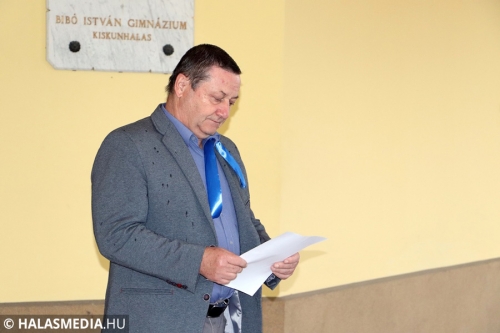 A megemlékezésen a résztvevők Bibó István örökérvényű soraiból idéztek, majd megkoszorúzták a gimnázium falán található emléktáblát, végezetül szalagot kötöttek az intézmény kerítésére, így vállalva szolidaritást a pedagógusokkal.