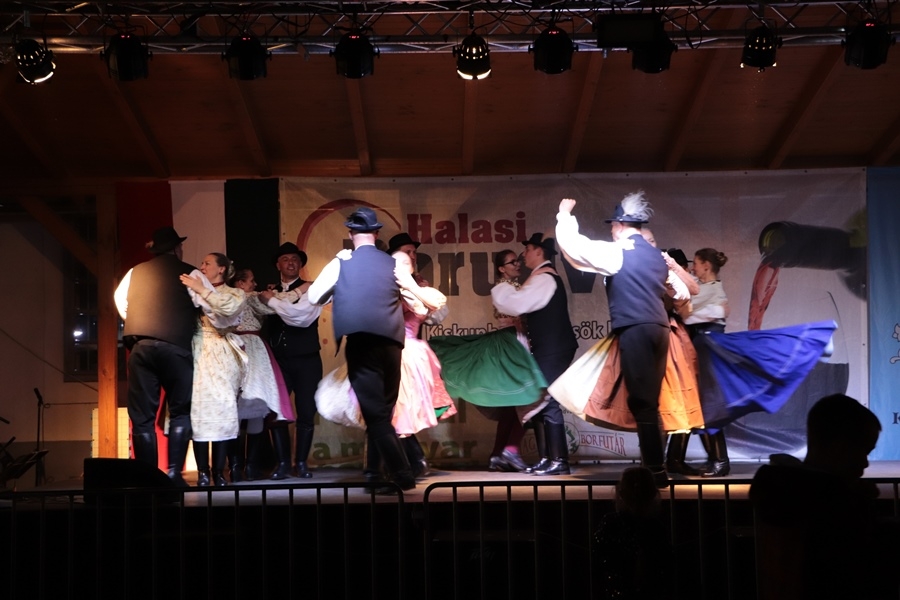 Fergeteges műsorral lépett színpadra a 35 esztendeje alakult Halas Táncegyüttes. A Cornea Zsolt vezette táncegyüttes sárközi, szatmári és szilágysági tánccsokorral lepte meg a közönséget, majd közös éneklésre és táncra invitálták a résztvevőket.