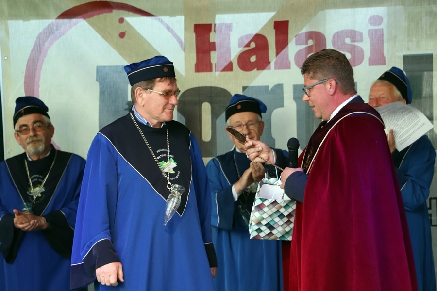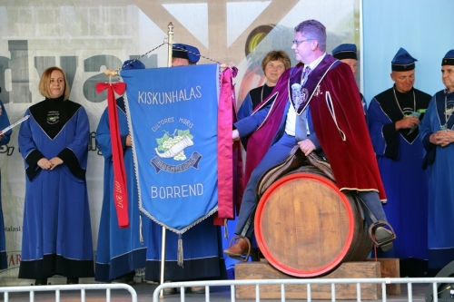A borlovagrend tagjai új borlovagot is avattak. Idén Kovács Róbert ülhetett a megnyergelt hordóra és mondhatta el fogadalmát. A Magyarországi Borrendek Országos Szövetségének alelnöke sikeresen meglovagolta a hordót, így bekerült a halasi borrend tagjai közé.