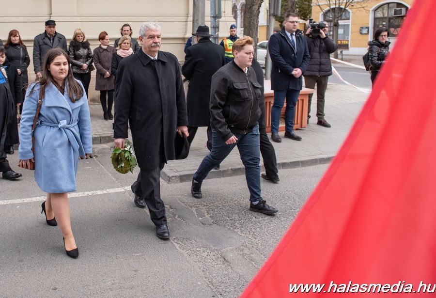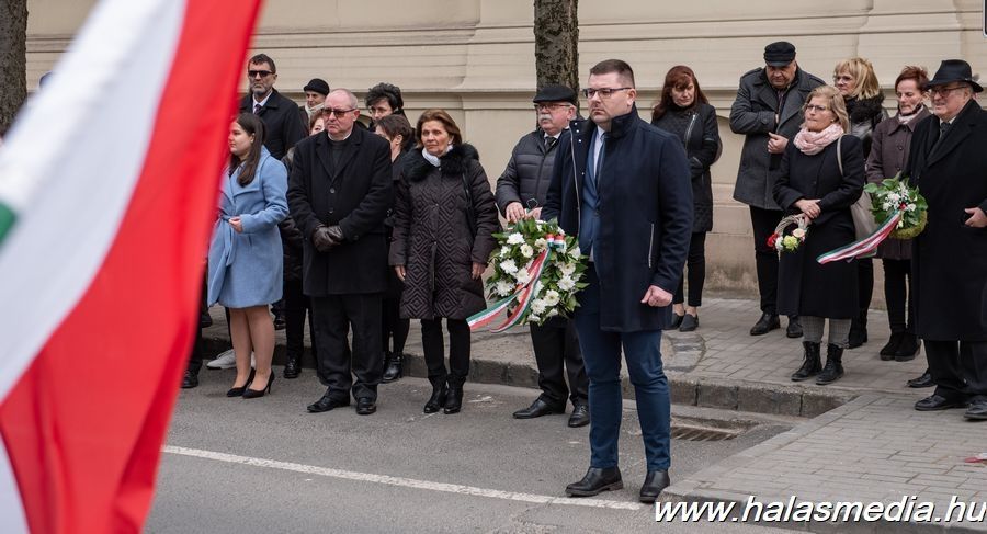 Február 25-én, délután négy óra előtt pár perccel több tucatnyian gyülekeztek a Thorma János Múzeummal szemben, a városháza falán elhelyezett kommunista diktatúrák áldozataira emlékező bronz dombormű előtt (Szabó Áron szobrászművész alkotása szerk.). A kommunista diktatúrák áldozatainak emléknapja halasi rendezvényét Kuris István László alpolgármester indította, aki a város vezetése nevében koszorút helyezett el az emléktábla alatt.