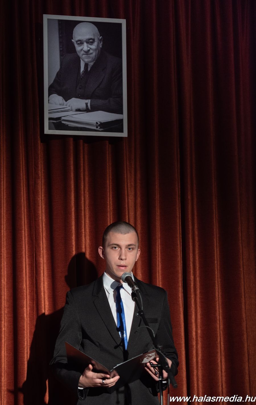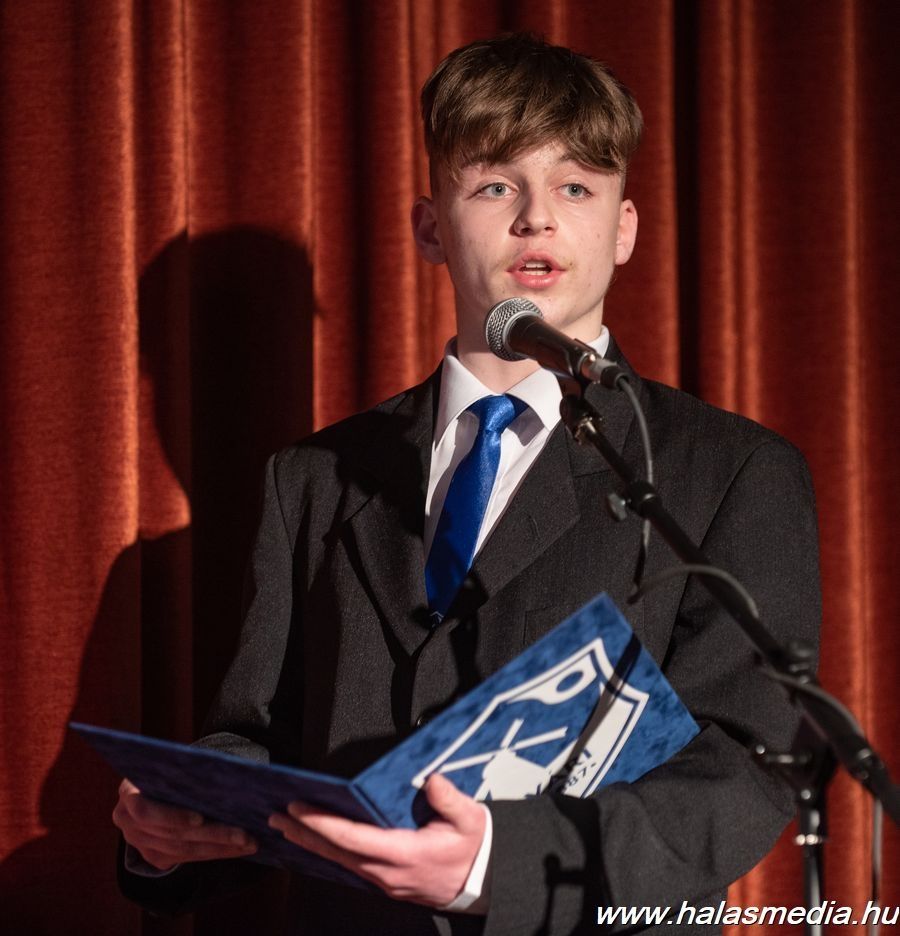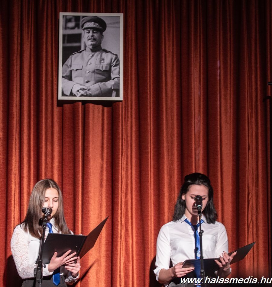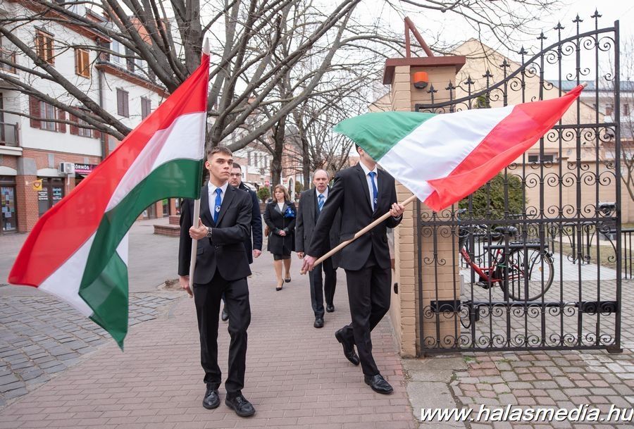 A megemlékező műsor közönsége először közösen elénekelte a himnuszt, majd Dr. Komáromi Szilárd (címképen), a Kiskunhalasi Szakképzési Centrum Vári Szabó István Szakképző Iskola és Kollégiuma igazgatója mondott beszédet. A szónok kérdéseket tett fel a résztvevőknek, amelyeket maga válaszolt meg. A kérdések a kommunista diktatúra szereplőire, áldozataira, azok körülményeire és következményeire vonatkoztak.