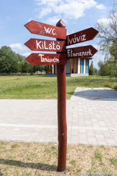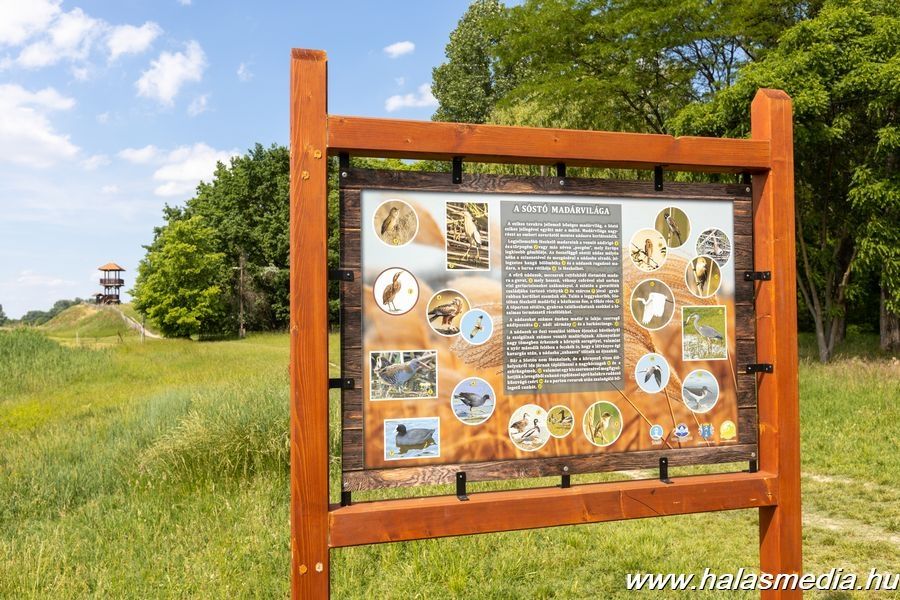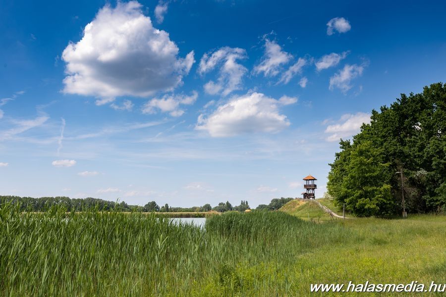 Kiskunhala egyik színes turisztikai célpontja, a Sóstó több pontjáról mutat szemnek tetszetős látványt. Az 53-as út mentén található benyúló kis félsziget, vagy az Olajosok útja felől megközelíthető, hosszabb földnyelv érdekes aspektusokat kínál, amelynek látképébe jellemző képpontként kandikál be a faszerkezetes, tetővel ellátott, földhalomra épített kilátó. Legmagasabb szintjéről szinte természetes, élőtérképként veheti szemügyre a térséget az arra járó vendég. A kilátó alatt a tóparttól kifelé elnyúló erdős területen pihenő padok, főzőhelyek állnak rendelkezésre családi, baráti rendezvények megtartásához.