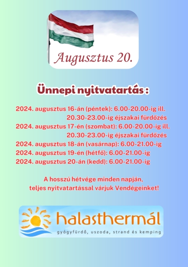 A hosszú hétvégét szabadidős elfoglaltsággal, vagy közösségben tölteni szándékozó halasiak számára fontos információ lehet, hogy a Kiskunhalasi Gyógyfürdő a következő napokban is a megszokott nyitva tartással várja a strandolni vágyókat.