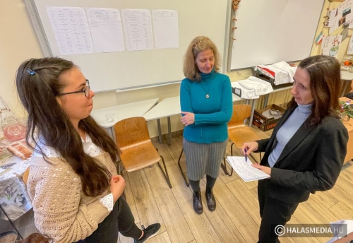Harnóczi Hajnalka pedagógus (jobb oldalon) feladatelosztás közben