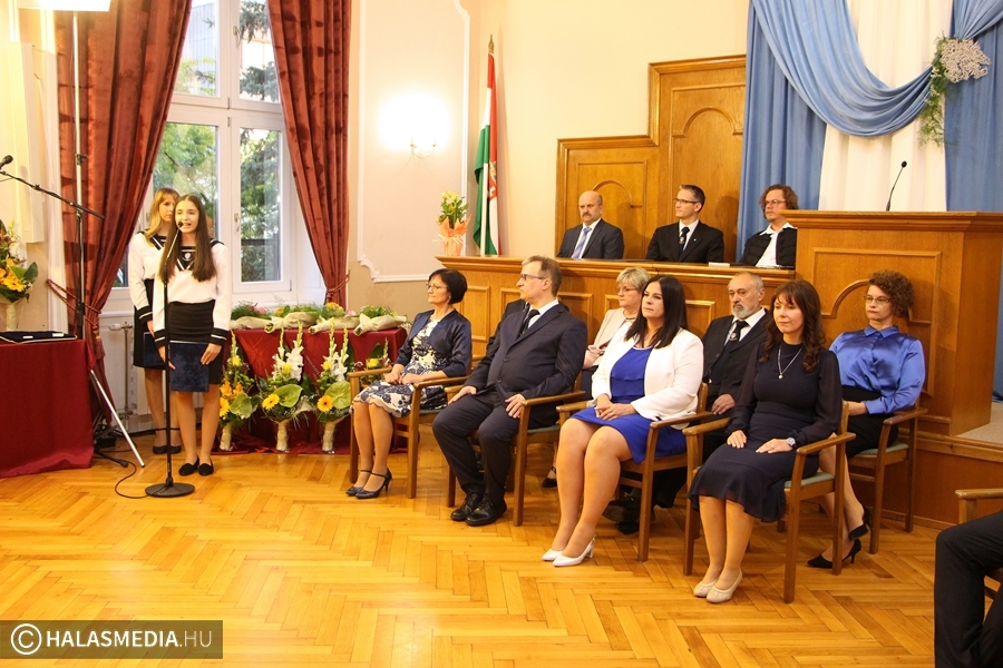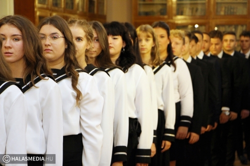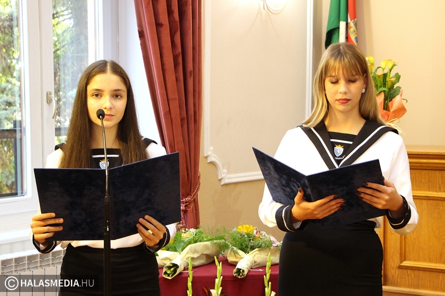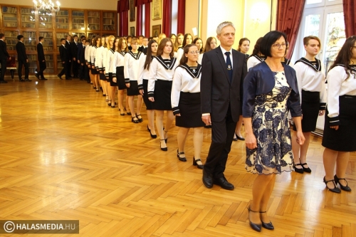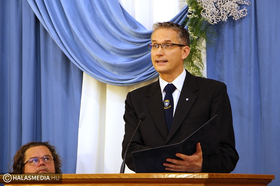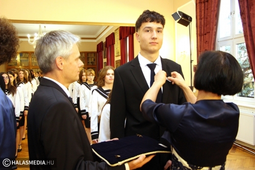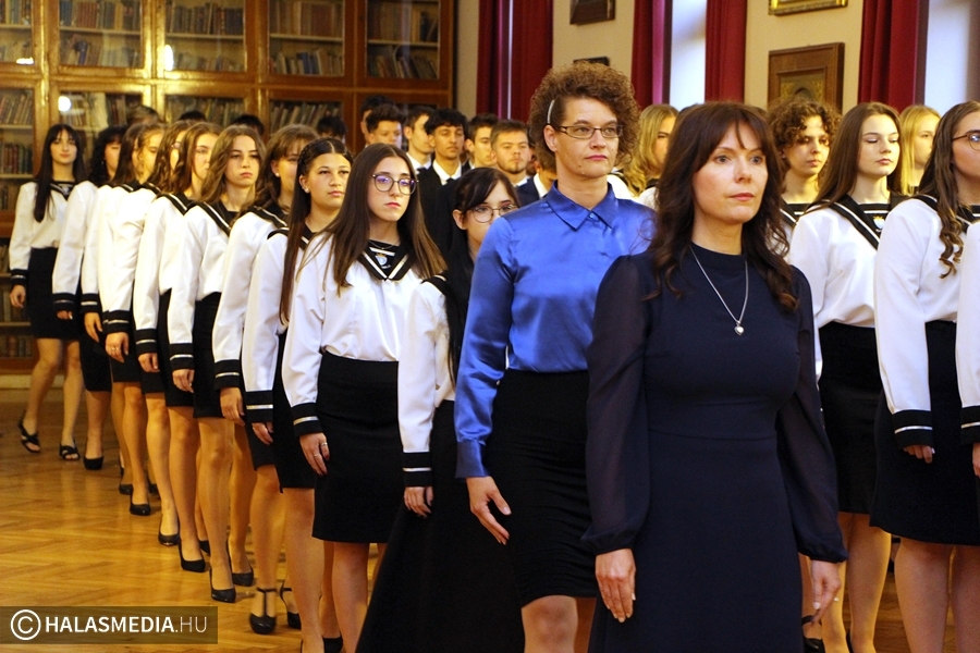 - Az idei szalagtűző különlegességét az adja, hogy 360 évvel ez előtt alapították iskolánkat. Akkor még egyszerű két kis tanteremben folyt az oktatás, ma impozáns iskolapalotában tanulhatnak a halasi református középiskola diákjai. A szalagtűző ünnepség, nem csupán egy hagyományos esemény az iskola naptárában, hanem egy fontos mérföldkő mindannyiunk életében. Különösen nektek, kedves végzős diákok, akik most már hivatalosan is maturandák és maturanduszok lettetek…A szalag, amit ma a 106 végzős diák ruhájára tűztek az osztályfőnökök, szimbólum. Egy jel, amely megmutatja, hogy az eddigi küzdelmes, néha nehéz, de semmiképpen sem hiábavaló évek után elérkeztetek egy olyan ponthoz, ahol a célegyenes már látható. A szalag emlékeztet mindannyiunkat arra, hogy a Ti utatok nemcsak erről a pillanatról szól, hanem arról az időszakról, ami mögöttetek van, és arról a célról, amely felé tartotok.