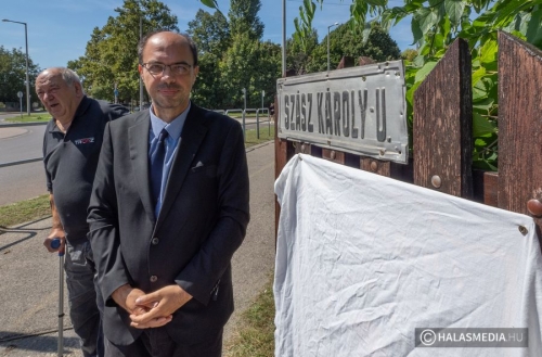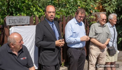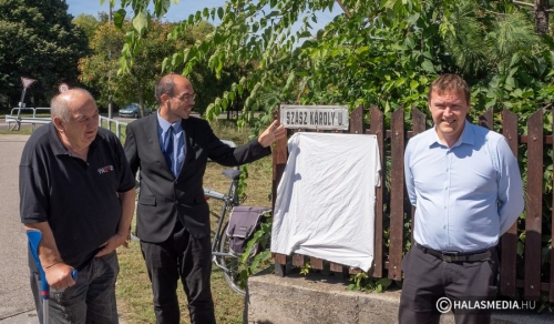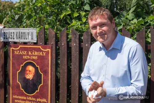 A tábla leleplezése előtt Fülöp Róbert, Kiskunhalas polgármestere köszöntötte a jelenlévőket és méltatta Némedi Imre kezdeményezését. Kiemelte, hogy Szász Károly nevét 1929 óta viseli az utca és ebben igen erős közmegegyezés volt akkor és van ma is. Időt álló választás, amely jól kifejezi az egykori református lelkész, költő, drámaíró, műfordító, esztéta, politikus elfogadottságát és a személye iránt érzett városi tiszteletet.