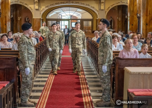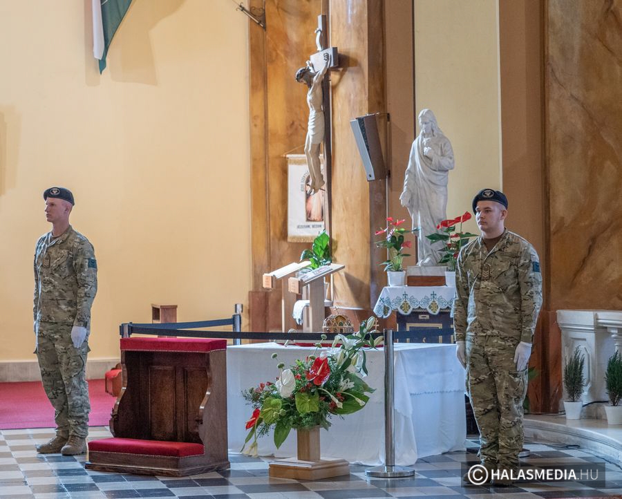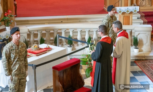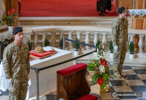 A koronázási ékszereket díszpárnákon a templom főhajójában, az oltár előterében díszpárnákon helyezték el, ahol a Kiskunhalasi SZC Dékáni Árpád Technikum kadétjai 15 perces váltásokkal álltak díszőrséget. Seffer Attila vezette a szentmise előtti közös imát. A szentmisét Fülöp Ernő kanonok, a kalocsai főszékesegyház plébánosa mutatta be a híveknek és érdeklődőknek. A szentmisét követően lehetőséget kapott a közönség a Szent Korona Hummel Gizella-féle másolatának közelebbről történő megtekintésére.