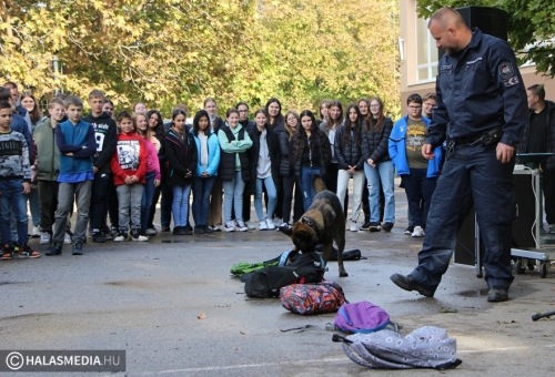 Molnár Nándor, a Kiskunhalasi Szakképzési Centrum Dékáni Árpád Technikumának igazgatója tájékoztatta a végzősöket a továbbtanulási lehetőségekről. Az intézményvezető jelezte, hogy népszerű a rendész szak, amelyre háromszoros a túljelentkezés. A mostani alkalmon az egészségügyi területre is felhívták az érdeklődő fiatalok figyelmét. A program egyik legnépszerűbb része volt a kutyás bemutató volt. Ennek főszereplője a büntetés végrehajtástól Szikra, a speciális képzettségű négylábú volt. E mellett ki lehetett próbálni a rendőrség által használt eszközöket, valamint dékánis diákoktól, oktatóktól első kézből kaphattak információkat a gyermekek az ott folyó képzésről.