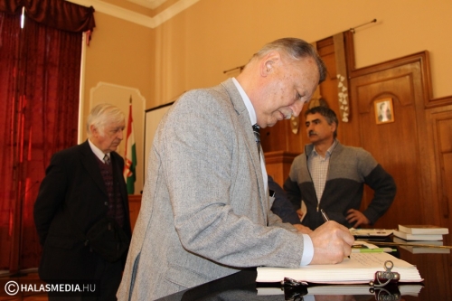 A gimnázium dísztermében, a Szilády Áron-festmény előtt, a zongoránál elhelyezett vendégkönyvbe beírhatták bejegyzéseiket a jelenlevők.