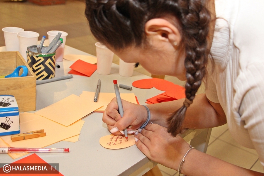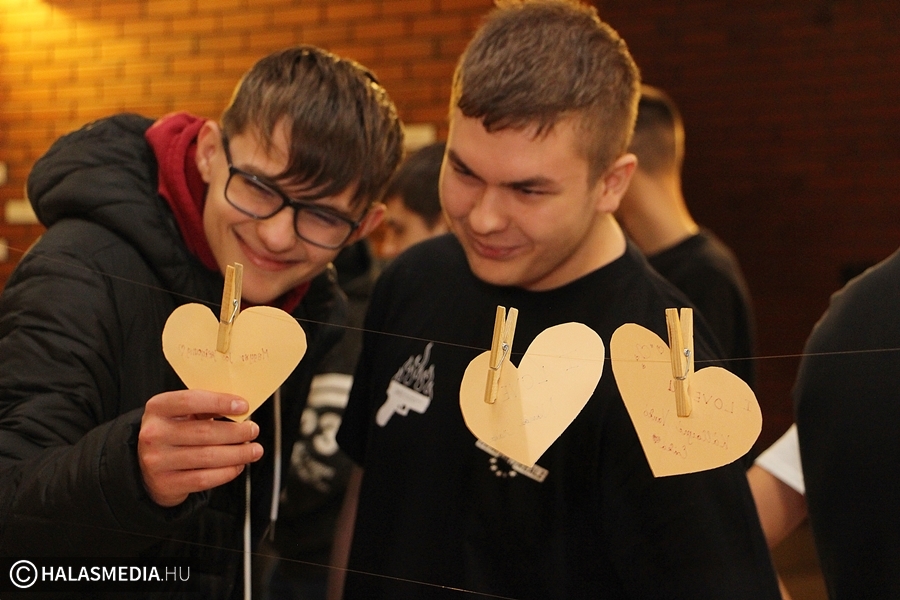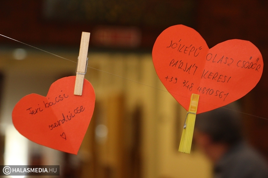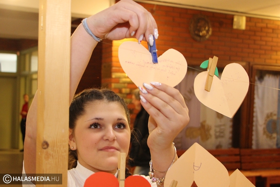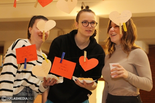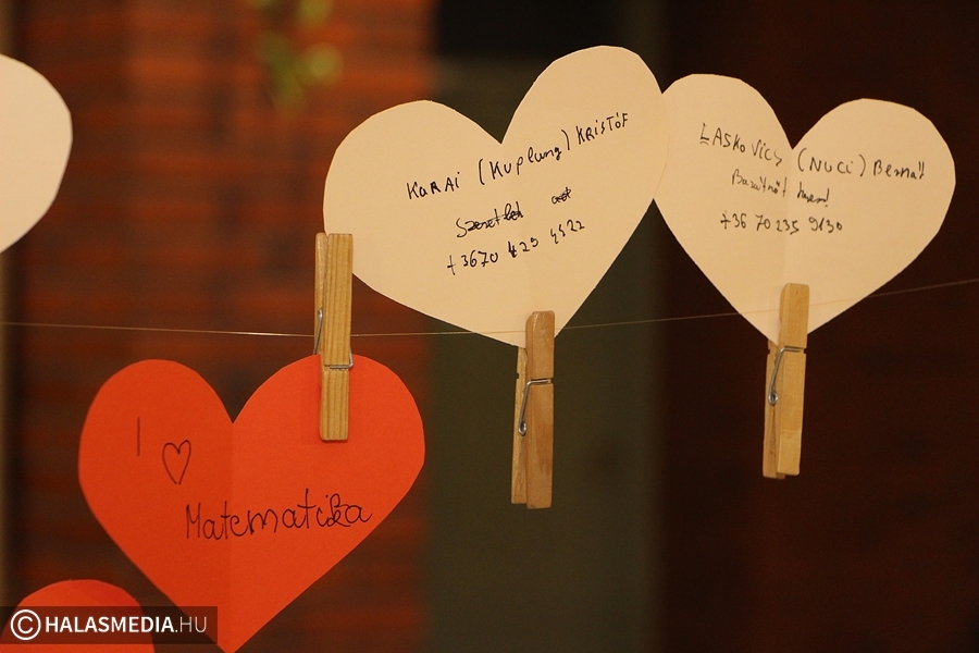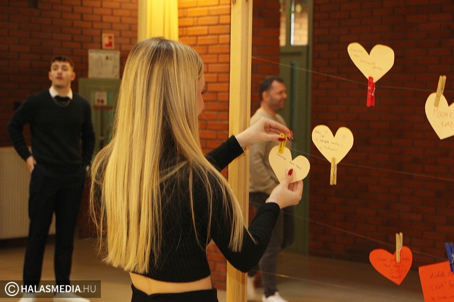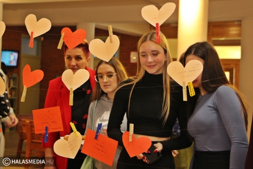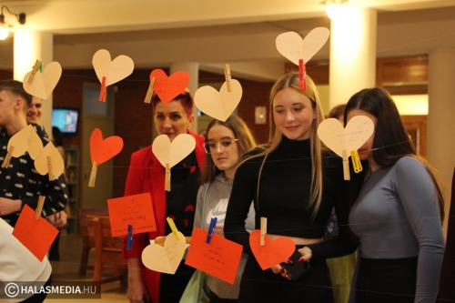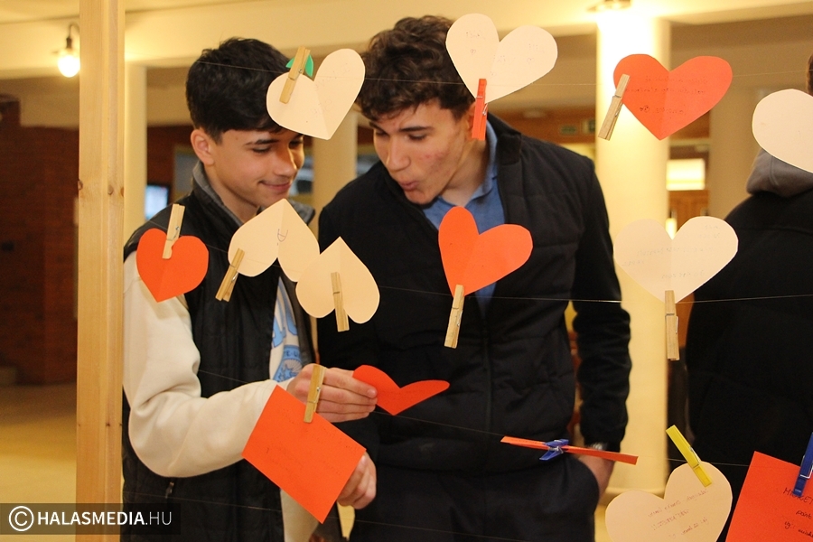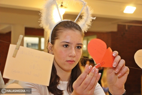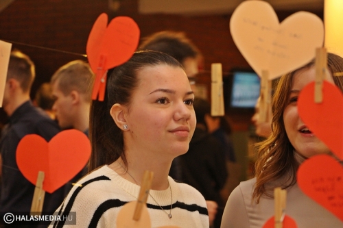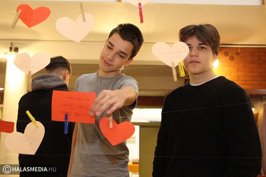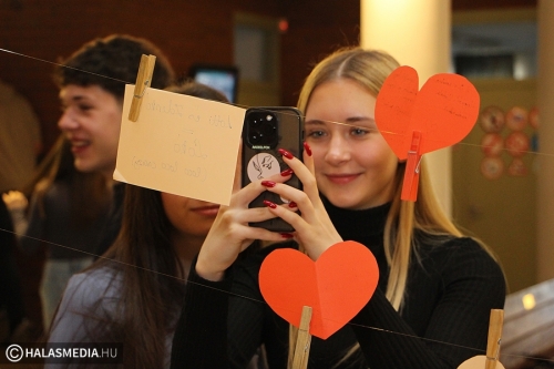 Arra is lehetőség nyílt, hogy a legbátrabbak, a szív alakú papírokra vetett soraikat, az aulában kihelyezett üzenőfalra tegyék ki, ahol aztán bárki megtekinthette a romantikus vagy éppen humoros gondolatokat.