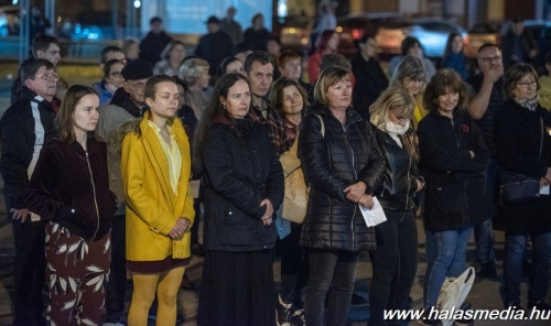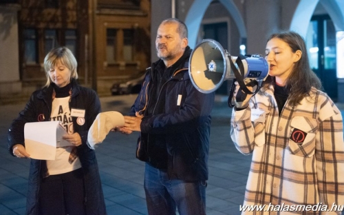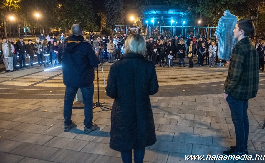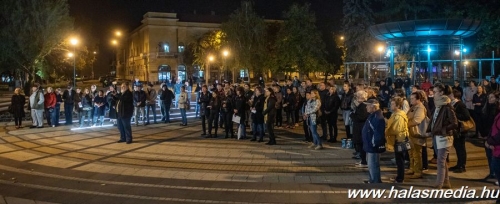 Kiskunhalas főterére, a Bethlen Gábor térre szerveztek október 27-én, 19 órára szolidaritási rendezvényt civilek. A két főszervező Gönczöl Beáta óvodapedagógus és Szigeti-Pap Miklós szülő a halasi mozi elé hívták a résztvevőket, hogy közösen vállaljanak szolidaritást az oktatás jövőjéért. Az eseményre hét óra előtt néhány perccel csoportokba verődve érkeztek a szolidaritást vállaló halasiak, akiket a rendezvényhez jól illeszkedő, a pedagógusokért az ifjúságért, az oktatásért, a szabadságért mozgósító tartalmú, kihangosított dalokkal vártak a szervezők.