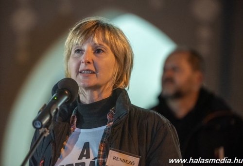 Gönczöl Beáta óvodapedagógusként beszélt az egybegyűltekhez második szónokként, amelyben elmondta véleményét a helyzetről. Mondanivalójában a kialakult méltatlan helyzetet saját példáján keresztül érzékeltette. Mint mondta, egyedülálló édesanyaként a havi nettó fizetése, negyvenhárom évesen, 24 évi munkaviszony után, 238 691 forint. Ebből kell megoldani mindennapjaikat két gyermekével - akik közül az egyik egyetemista - ami szinte lehetetlen. Mindezzel nincs egyedül, mert ilyen és ehhez hasonló bérezés jellemző a pedagógusok körében. Ezek miatt és sok más oktatásszakmai hiányosság miatt is kell kiállni közösen magukért, a diákokért, a jövő nemzedék, a jövő pedagógusai érdekében.