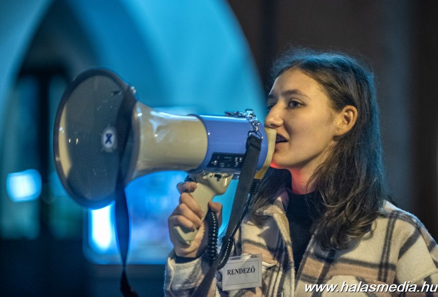 A diáklány hangsúlyozta a pedagógusi munka nehézségeit, amely terhek az oktatás, nevelés rovására mennek. Ezeket a terheket csökkenteni kell véleménye szerint, hogy legyen a pedagógusnak ereje, ideje elvégezni a szakmai munkáját. Az egyetemista fél perc néma csendet kért „a haldokló oktatásért” a gyülekezettől, majd a „nincs tanár, nincs jövő” rigmus ismétlésére buzdította a közönséget, ami után Dés László - Geszti Péter: Mi vagyunk a Grund című dalt hallgatta meg a tömeg.