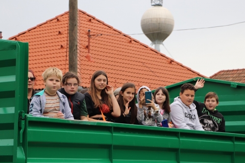 A színpadi programok részeként felléptek a helyi és környékbeli táncegyüttesek és zenekarok. A közösen elfogyasztott ebéd után felsorakoztak a traktorok, megkezdődhetett a szüreti menet. A vidám helyiek és vendégeik zeneszó kíséretében járták be a település utcáit, hívogatva a még otthon tartózkodókat.