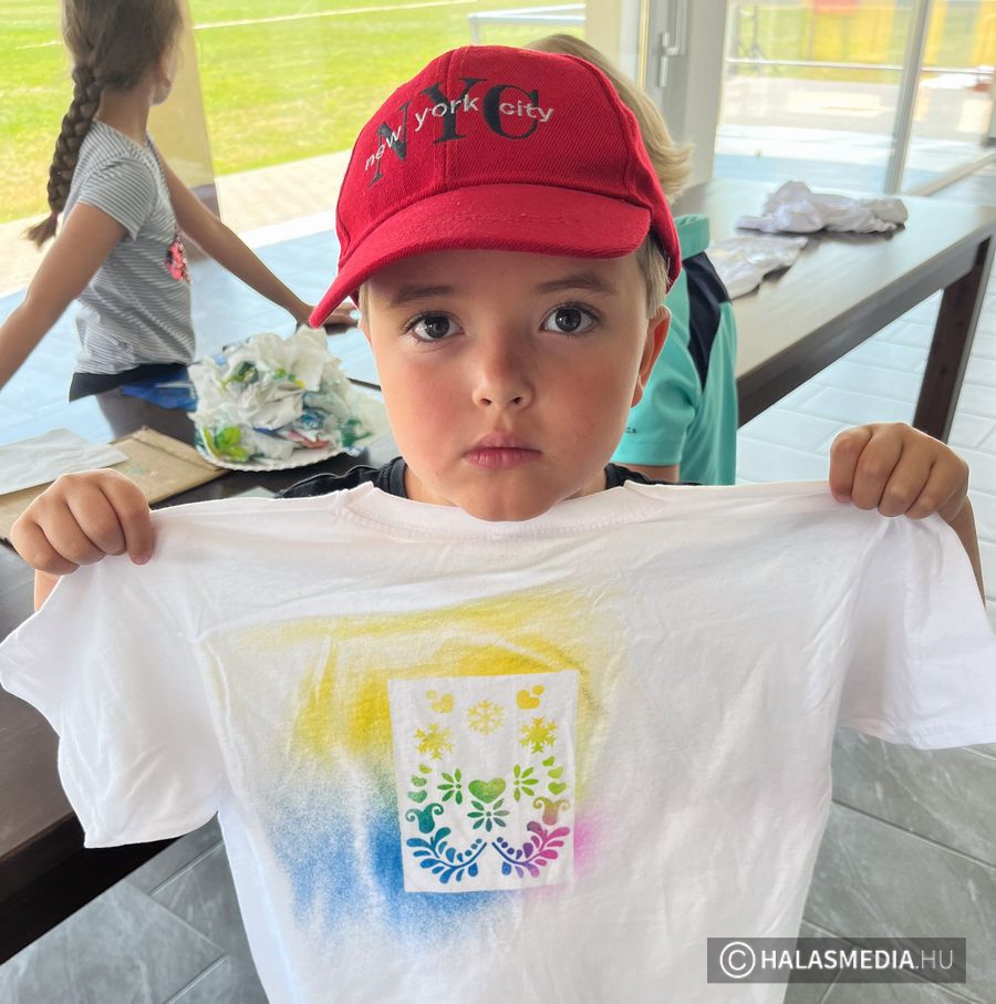 A táborban reggeltől estig különböző, gyermekeket lekötő foglalkozásokat tartanak. A lovas élet megismerése mellett társasjátékokat, rajz és kézműves foglalkoztató órákat biztosítanak a gyerkőcöknek. A képzett pedagógusi felügyelet mellett folyó, sokoldalú elfoglaltságot nyújtó táborban, ma egy különleges feladatot kaptak a kicsik. Fülöpné Soltész Erika tanítónő irányításával országzászlót kellett tervezni mindenkinek a saját elképzelései szerint.