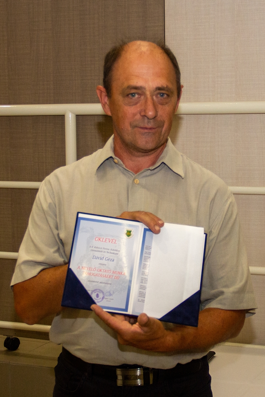 „A nevelő-oktató munka támogatásáért” díj elismerést az az iskolában dolgozó nem pedagógus személy kaphatja, aki huzamosabb időn keresztül segítette az oktató-nevelő munkát. Ebben a kitüntetésben most Dávid Géza, a karbantartói csoport vezetője részesült, aki fáradhatatlanul vesz részt intézmény működtetésében.