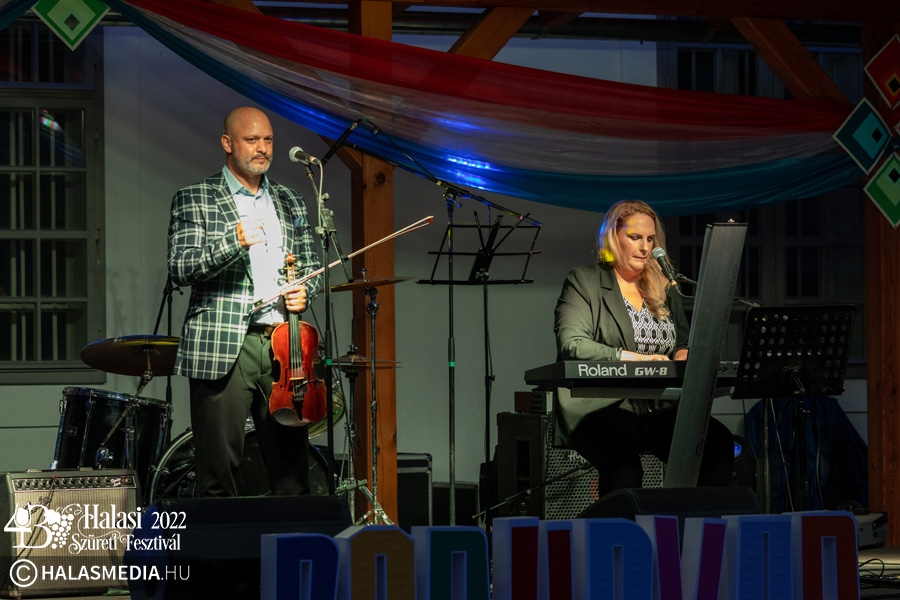 Már hét órakor foglaltak voltak az asztalok a halasi díszudvarban. A közönség elsőként Kunovics Katinka és Albert Zoltán közös fellépését fogadta nagy tapssal.