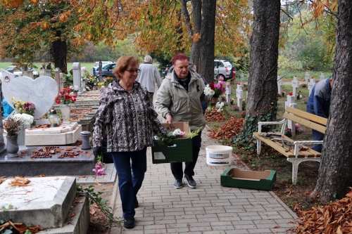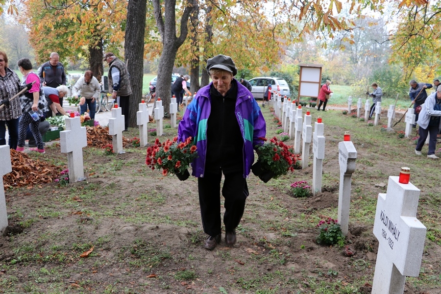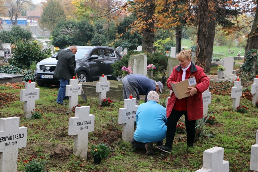 Tallérné Nyitrai Ilona elnök hívó szavára 28-an gyűltek össze a katolikus temetőben. Évek óta hagyomány, hogy rendbe teszik a katonasírok környékét. Az önkéntesek összeszedték a falevelet, virágokat ültettek a fejfák elé és mécseseket gyújtottak a katonák emlékére. Idén két virágkertészet is segítséget nyújtott az önkénteseknek. Büszke vagyok erre a kis csapatra és köszönöm a munkájukat- mondta az egyesület vezetője a munkálatok befejezésekor.