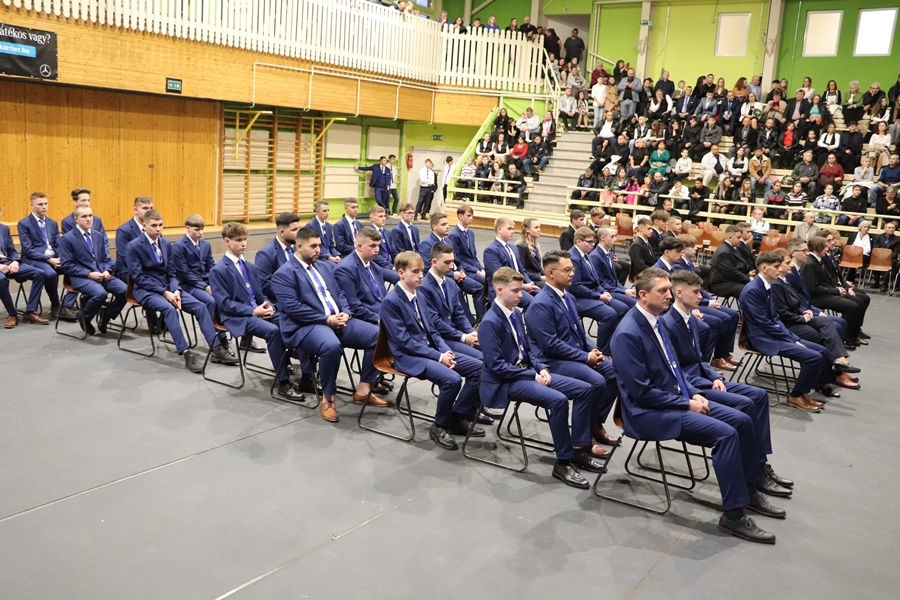Osztályfőnökeik vezetésével vonultak a terembe a pincér, szakács, gépjármű mechatronikus, hegesztő, karosszérialakatos, burkoló, kőműves, kereskedelmi értékesítő, lakástextil készítő, gépjármű mechatronikai technikus, vendégtéri szaktechnikus, pék, pék-cukrász, villanyszerelő, asztalos, festő, mázoló, tapétázó osztályok.