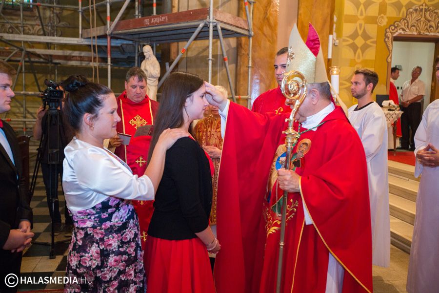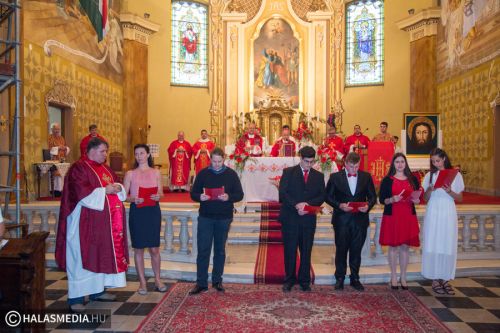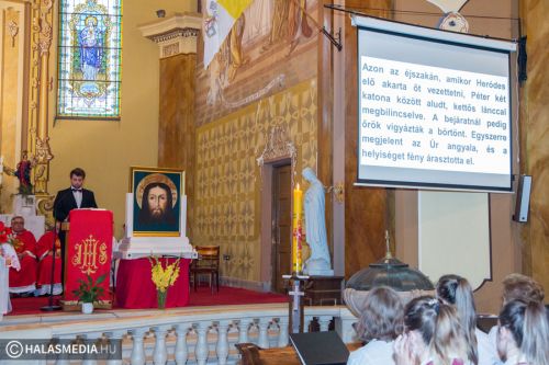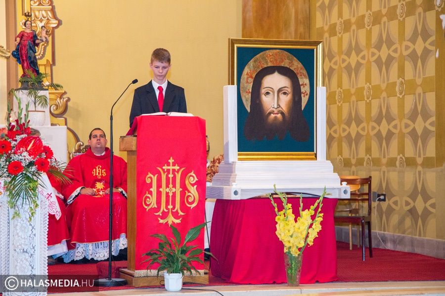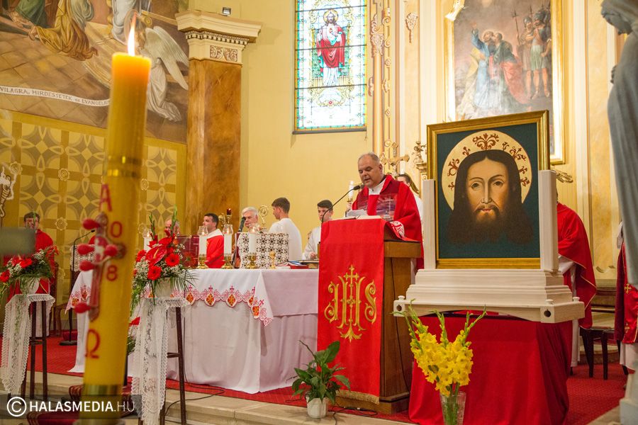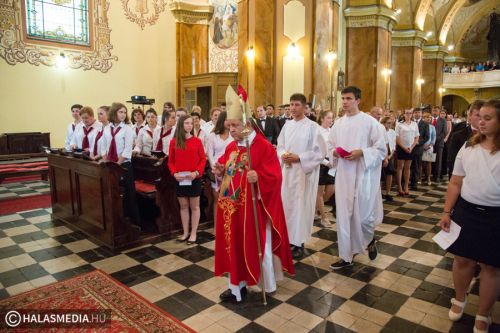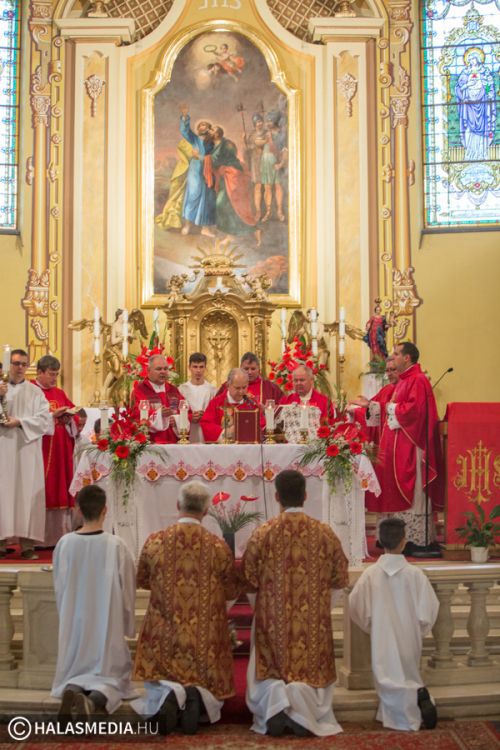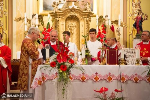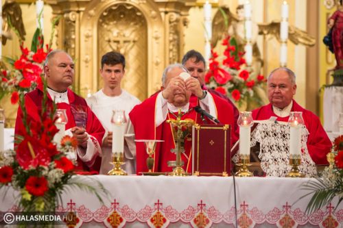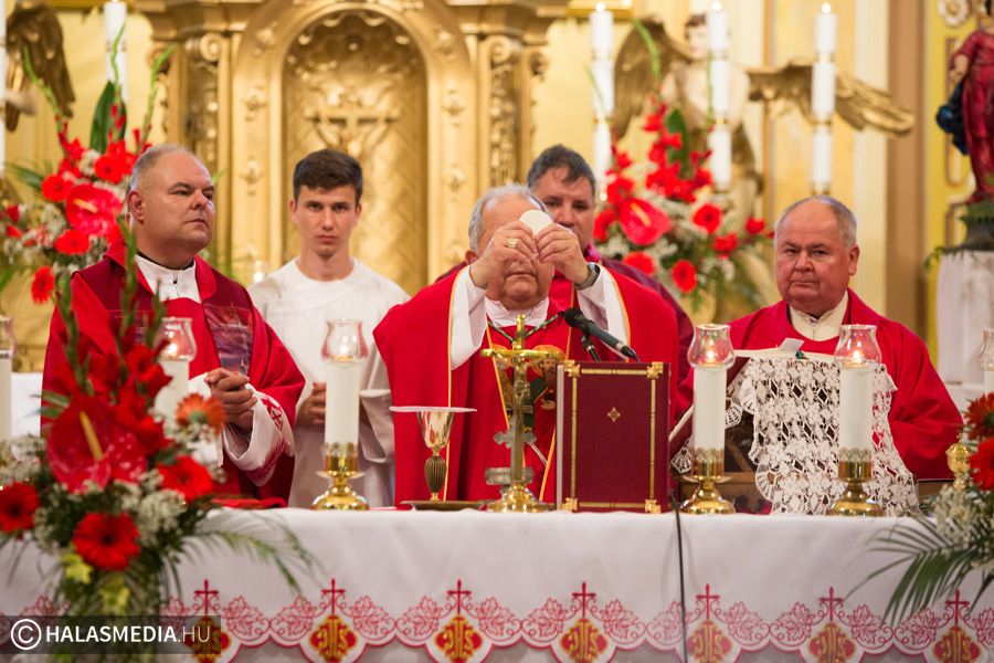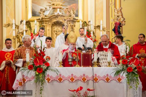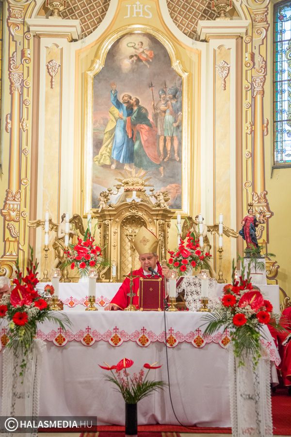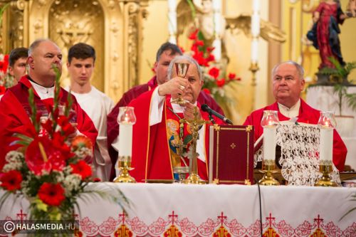 A halasi alsóvárosi katolikus templomban péntek este, Szent Péter és Pál apostolfejedelmek főünnepi nagymiséjét Dr. Bábel Balázs Kalocsa-kecskeméti érsek mutatta be. A szertartáson a bérmálás szentségét is az egyházi vezető szolgáltatta ki a fiataloknak. A szentmisén már részt vettek a lengyel vendégek is. Halas testvérvárosának, az újszandeci bazilikának plébánosa és kórusa. A szentmise előtt ünnepélyesen kihelyezték a lengyel testvérek által hozott kegyképet.