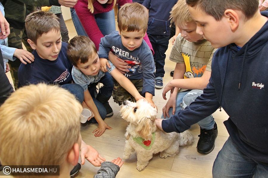 Még gyógyulni is könnyebb egy játékos kutyus mellett. Maci, a bichon havanese elbűvölte a gyerekeket a halasi kórházban. A gazdájával Horváth Eszter pedagógussal, a Kutyával Egy Mosolyért Alapítvány tagjával túl vannak egy kiképzésen és már egy éve járnak be az alsó tagozatos diákok óráira a Felsővárosi Általános Iskolában. Maci már a puszta jelenlétével sokat segít a gyerekeknek, vele könnyebb a tanulás, oldottabb a hangulat, elmúlnak a félelmek.