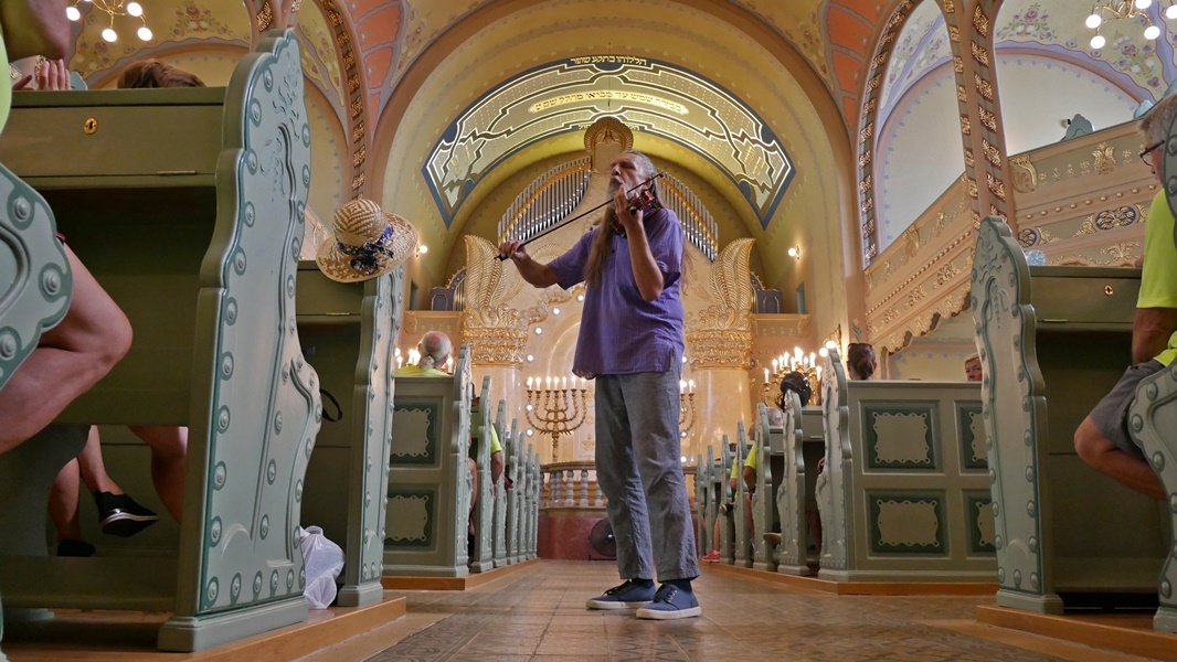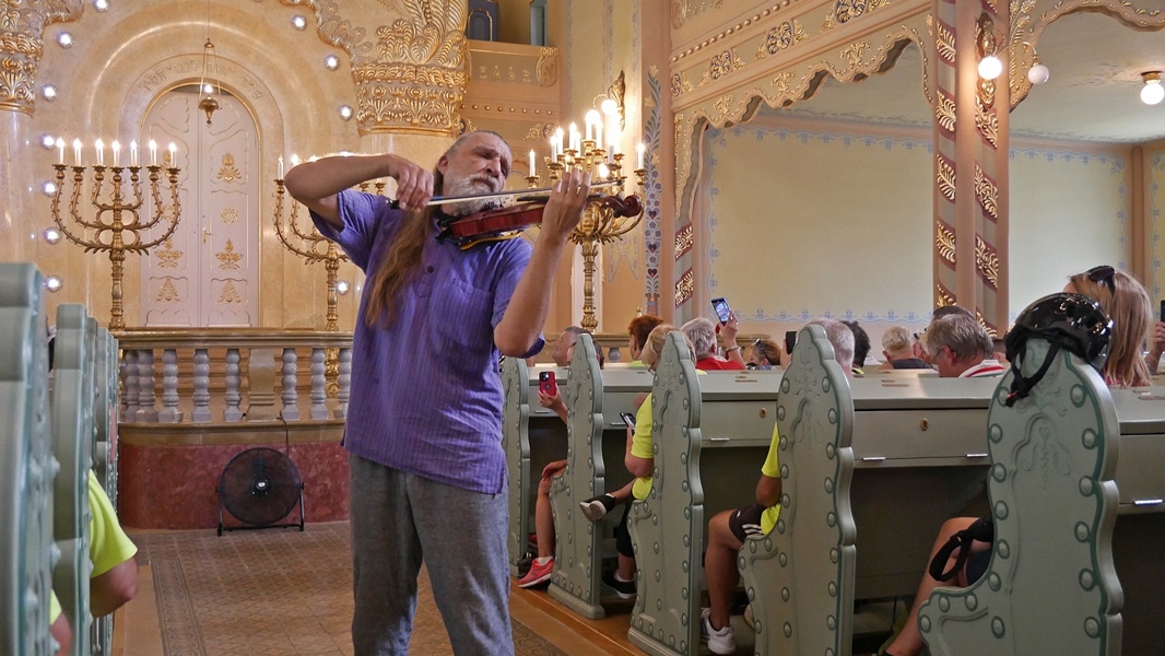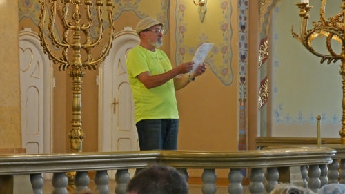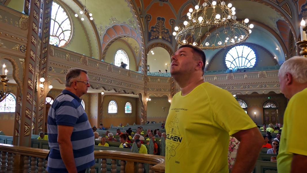 Az elhangzott ismertető szerint a zsinagógát 1902-ben építették Komor Marcell és Jakab Dezső tervei alapján. A művészeti és esztétikai értéke mellet, azért is rendkívüli zsinagóga Európában, mert az egyetlen, amely a szecesszió magyar változatának jegyeit viseli.