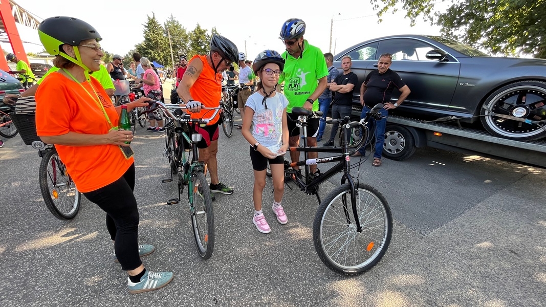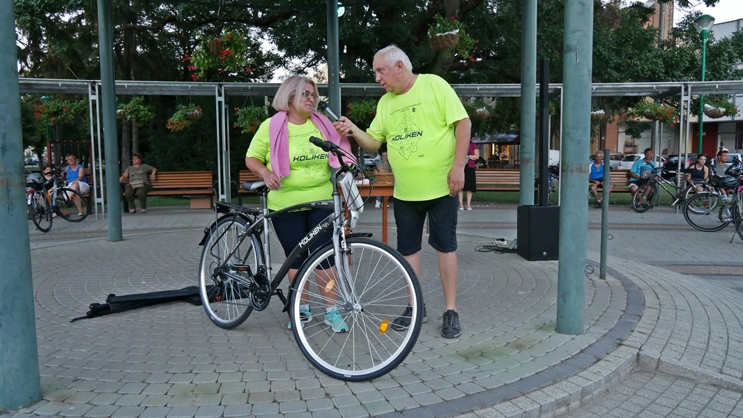 A Koliken Kft. idén két trekking kerékpárt ajánlott fel tombolatárgyként, az egyiket a 74 esztendős Bánfi Vilmosné vehette át Bartucz Kálmántól.