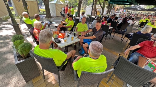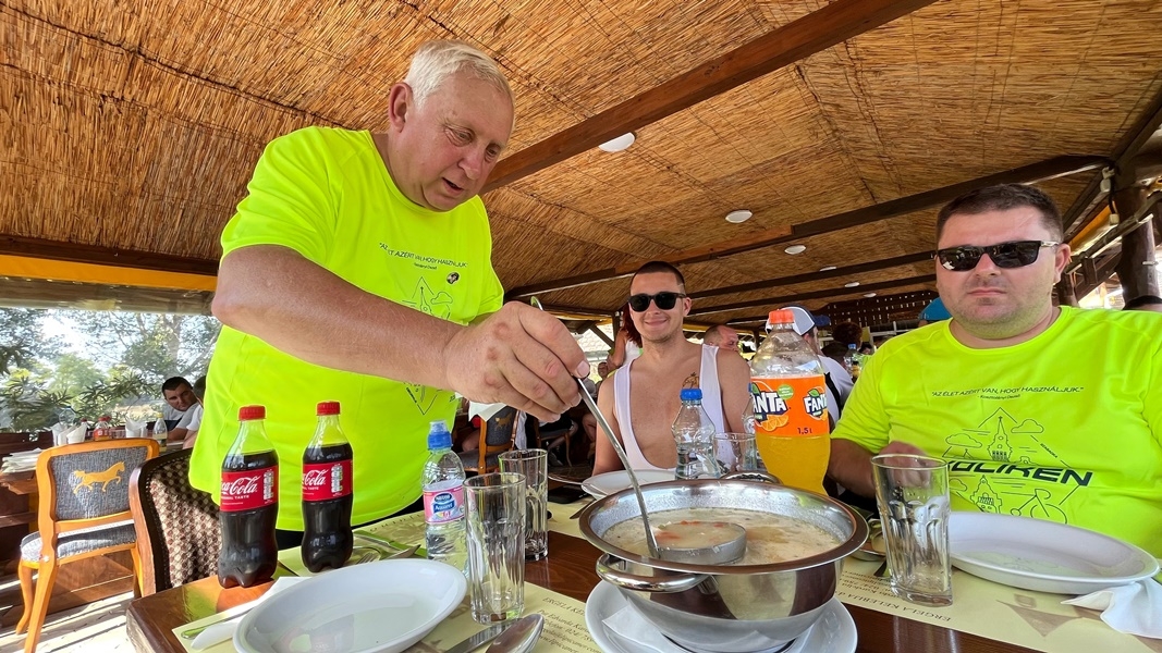 Az ebéd már a visszaúton a határközeli Ergela vendéglőben várta a tikkasztó hőség ellenére is kerékpározó résztvevőket.