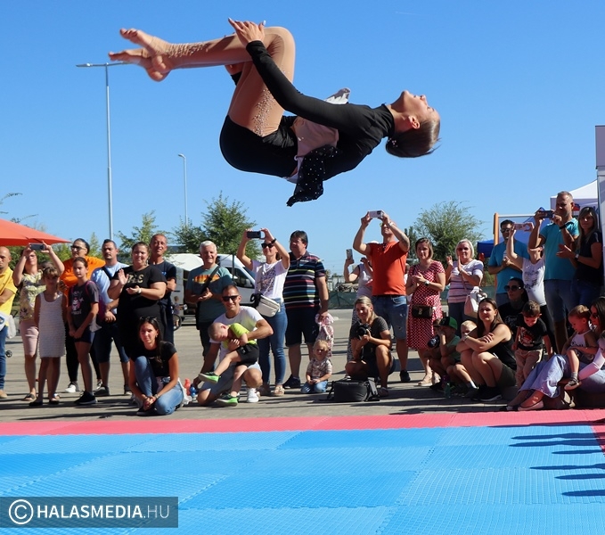 A szervezők fellépőkről is gondokosdtak. A Kyra Dance Team mazsorettesei között világbajnok is van, a halasi csoport tagjai nagy tapsot kaptak a közönségtől. Idén alakult a Generation Sportegyesület, amelyben komoly fitkid képzés folyik. Már látszik is az eredmény, a most bemutatott gyakorlatok előadói közül néhány október elején az országos bajnokságon méreti meg magát. A Sasok Taekwon-do Kiskunhalas 1992 óta van jelen a város sportéletében, a mostani szereplésükkel nem titkoltan toborozni szerettek volna. A nap hőse az volt, aki az OBI hódjának jelemezébe bújt a kánikulai hőségben. Mindenesetre ő volt az egyik legnépszerűbb, és róla, vele készült a legtöbb fotó is.