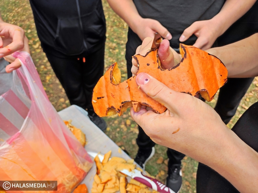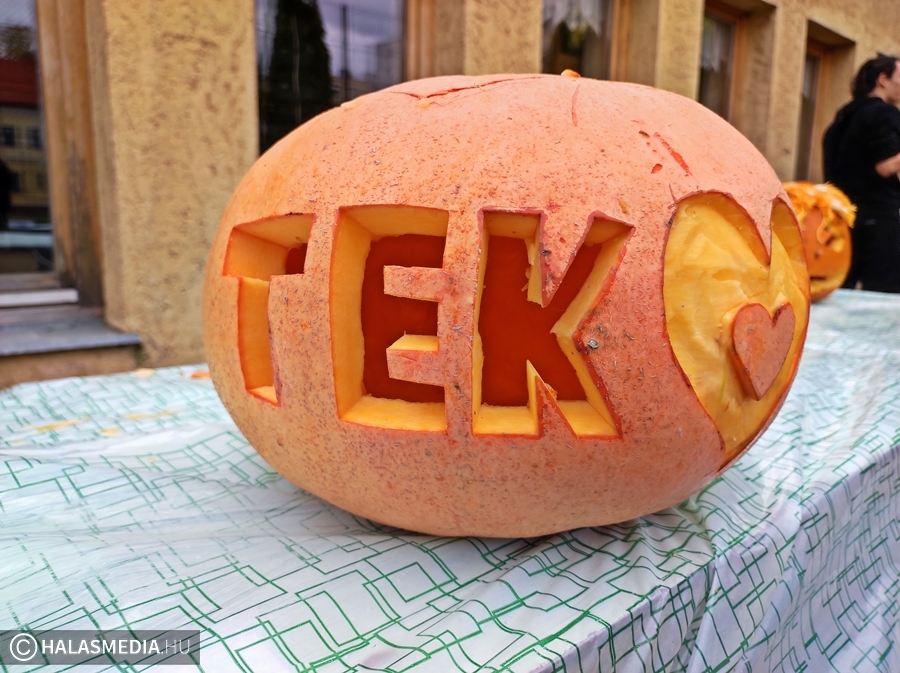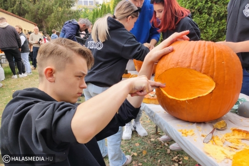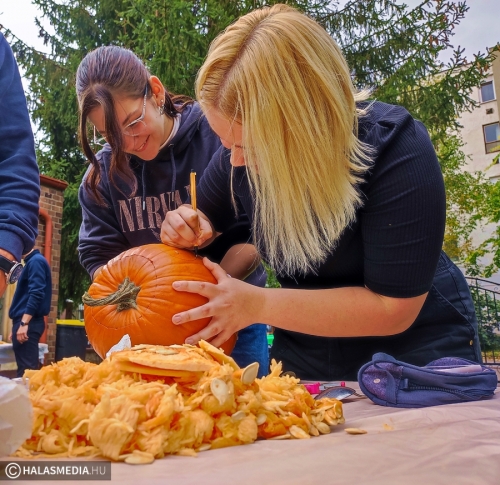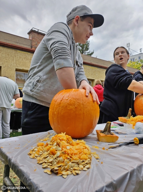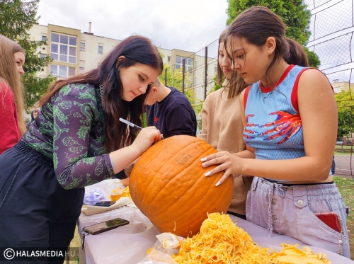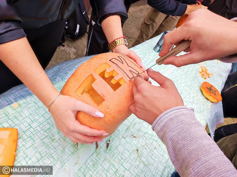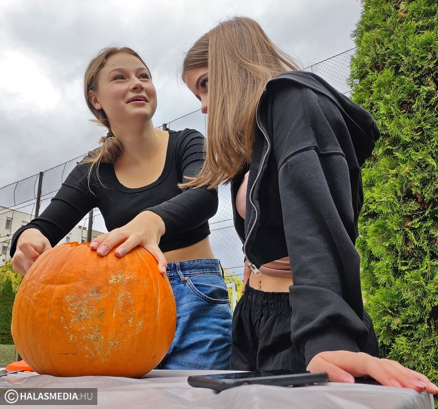 - Nagyon jó ez a rendezvény. Látszik, hogy minden osztály megtervezte, mivel is szeretne nevezni a versenyre. A tököket lefotózzák és egy online, Facebook szavazás keretében lehet majd lájkokat gyűjteni. Mi egy UFO alakot faragtunk ki a tökből – mondta Grizák Lívia résztvevő.