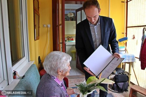 Jeles eseményre érkezett az egyik Rákóczi téren lévő családi házba Farkas Dániel alpolgármester Simon István szociálpolitikai csoportvezető kíséretében. Az itt élő Király Balázsnét köszöntötték 90. születésnapja alkalmából.