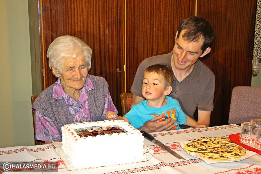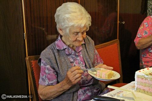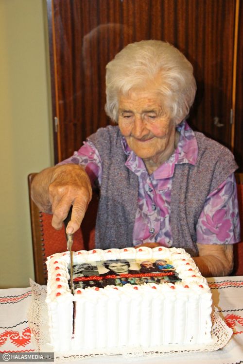 A kis ünnepség egyik legszebb pillanata a születésnapi torta átadása és felszeletelése volt. Az édességen lévő fényképen látható volt az ünnepelt, valamint lánya, két unokája és két dédunokája is. A családtagok azt mondják, mindannyiuknak példaképe a születésnapos, idős hölgy, hiszen kitartásával, magabiztosságával sok fiatalt leköröz.