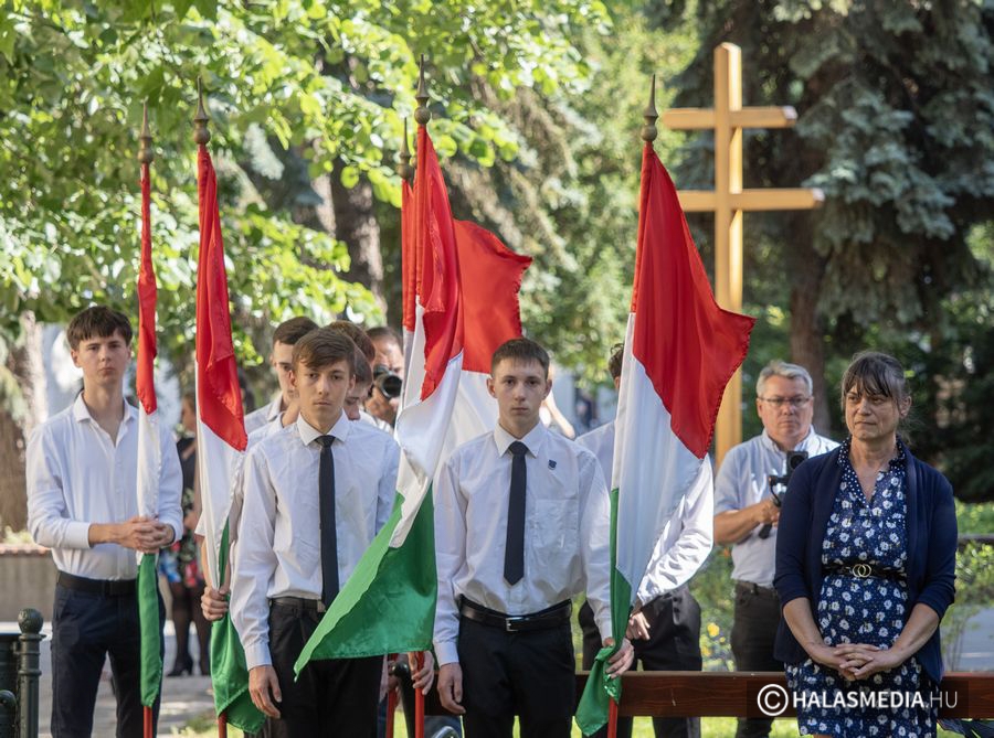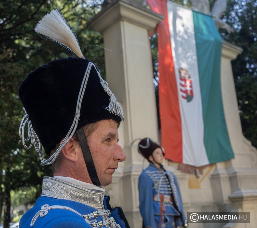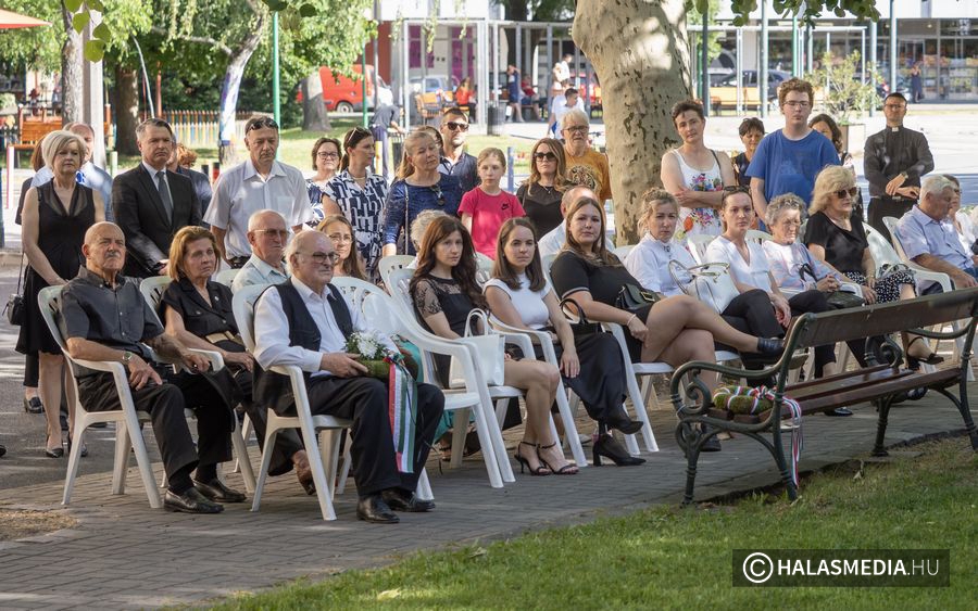 Az Országzászló emlékműnél a Kiskunhalasi Lovasbandérium díszelgő huszárkülönítmény vezetőjének vezényszavára zászlófelvonásra került sor a himnusz hangjai kíséretében. A szépszámú jelenlévő emlékező gyülekezet előtt Bányai Gábor, Kiskunhalas és térségének országgyűlési képviselője kormánybiztos osztotta meg gondolatait a jelenlévőkkel.
