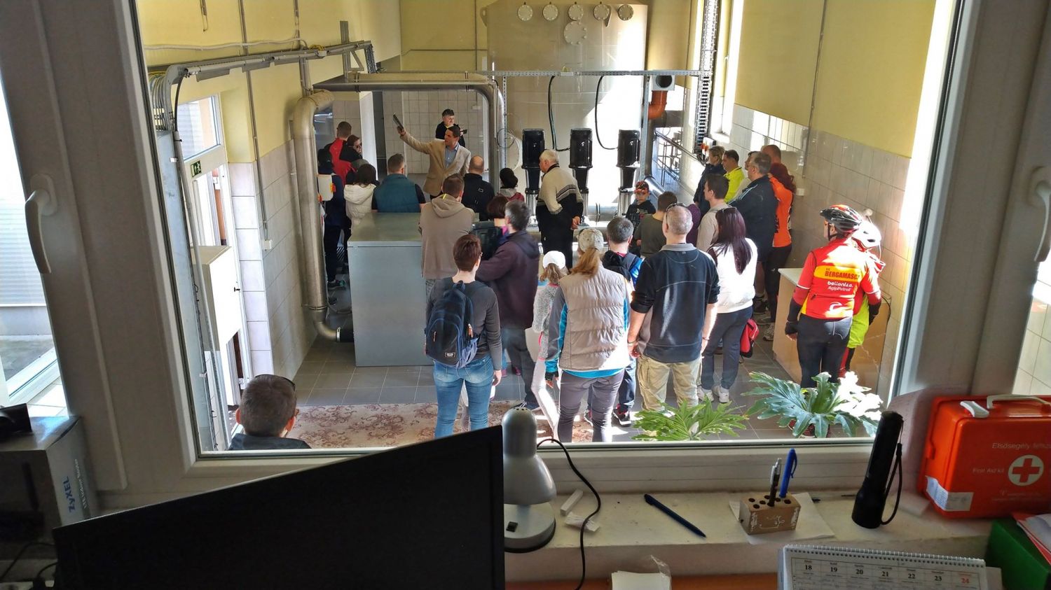 A halasi bringabarátok a Közösségek házánál gyülekeztek, majd nyeregbe pattanva a Kiskunsági Víziközmű-Szolgáltató Kft. telephelyére indultak. A verőfényes napsütésben vidáman tekert a csapat az Olajosok útján található 3. számú Vízműtelepre.
