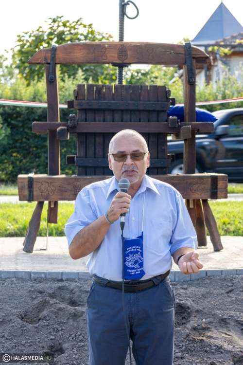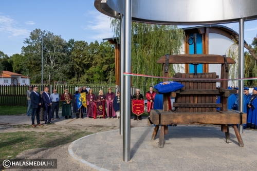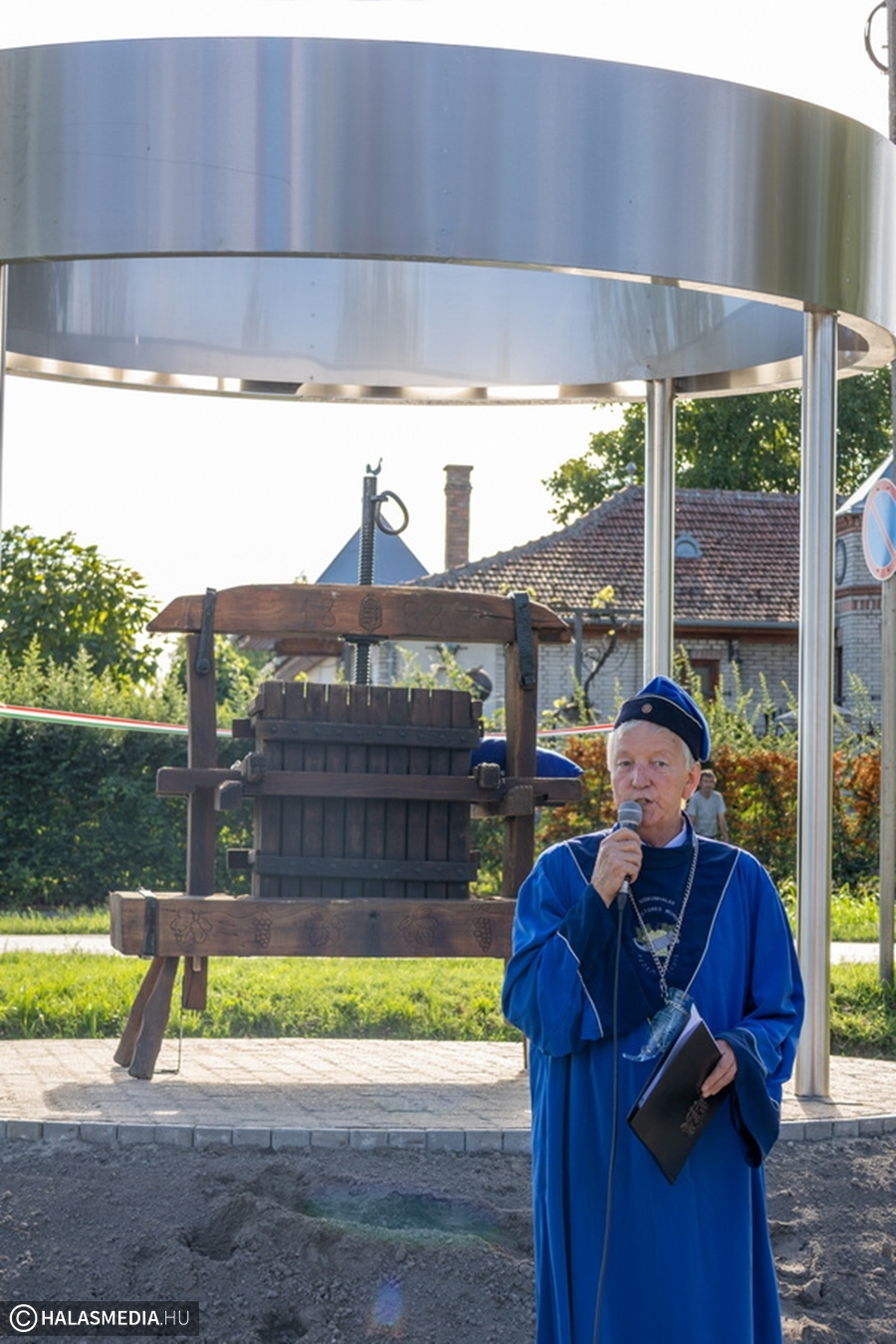 1987-ben a Szőlő és a Bor Nemzetközi Éve alkalmából Kiskunhalas megkapta a „Szőlő és a Bor Városa” címet. Ennek tiszteletére egykoron a Sóstó partján felállítottak egy prést, rajta emléktábla lett elhelyezve a kitüntető címmel. Az elmúlt évtizedekben az emlékmű állaga egyre romlott, a fa szerkezet elkorhadt. Látva ezt a Cultores Moris Redemtionis Borlovagrend tagjai szervezőmunkába kezdtek, hogy létrejöhessen egy új, időtálló emlékmű, melynek az avatását a 43. Halasi Szüreti Fesztivál nyitónapján tartották.