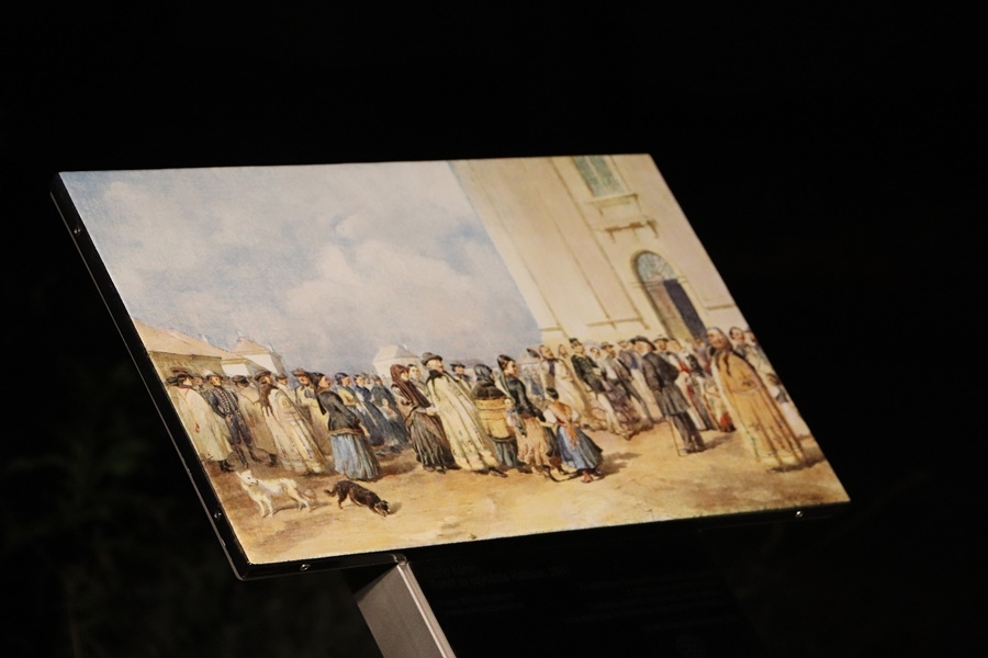 Ez a kép 1857-ben készült, akkor, amikor Ferenc József és Erzsébet királyné Magyarországra jöttek, a jászkun városokat látogatták meg, és nyilván ehhez a körhöz tartozott Kiskunhalas is, mint Kun város. A látogatás alkalmával egy nagy ünnepség volt, nagy reprezentáció, és a reprezentáció részeként megajándékozták a császári párt, és Sterio Károly festőművésztől rendeltek képeket, életképeket, zsánerképeket, amiket ezekről a településeken lévő templomokról és népi életképekről, tehát pásztorokról, falusi emberekről készített. Ebből raktak össze egy ajándékcsomagot, amit átadtak a császári párnak, és utólag kiderült, hogy ez annyira kedves volt az Erzsébet királyné számára, hogy a saját palotájában tartotta ezeket a képeket. Ezek a képek végül majd múzeumba kerültek, és onnan sikerült megszerezni." - mondta az ötletgazda.