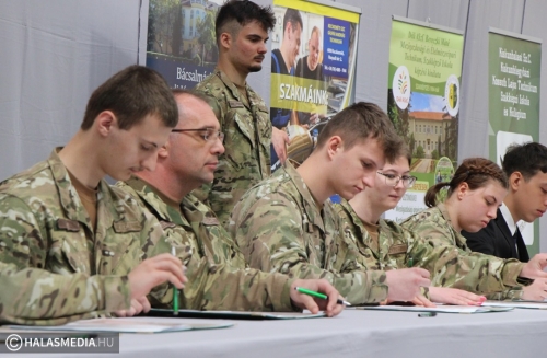 - Most jó lenni katonának, ugyanis a Magyar Honvédségben egy korszakváltás zajlik, amely a haderőfejlesztési program keretében 2015-2016 környékén indult el, és amely az elmúlt két évben felgyorsult- fogalmazott kiskunhalasi látogatásán Szalay-Bobrovniczky Kristóf honvédelmi miniszter. A tárcavezető a Kiskunhalasi Szakképzési Centrum Dékáni Árpád Technikumában az önkéntes tartalékosokhoz csatlakozó 150 diák szerződéskötésének ünnepségén vett részt.