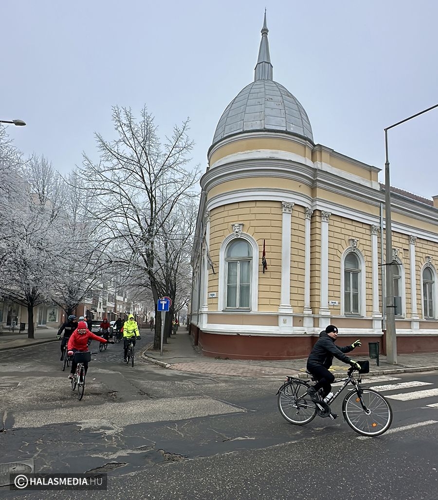 Összetartó közösség a Halasi Bringabarát Klub. Ha fúj, ha esik, ha nyári forróság izzasztja őket, vagy épp téli dermesztő hideg vár rájuk kerékpárra pattannak. Az egyesület tagjai rendszeresen túrákat hirdetnek hétvégeken, sőt ünnepnapokon is. A szilveszteri mulatságot ki-ki a saját családi vagy baráti közegében töltötte egy nappal ezelőtt. Ma délután, 2025. január 1-jén 13 órakor azonban bringával a kézben, a Közösségek előtt gyülekeztek a közös újévi tekerésre.