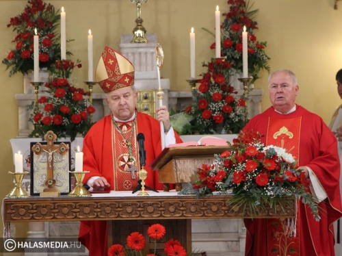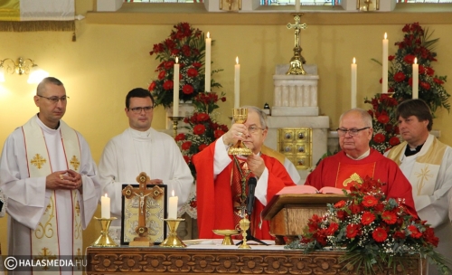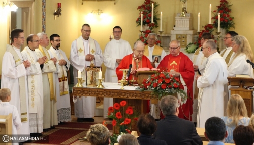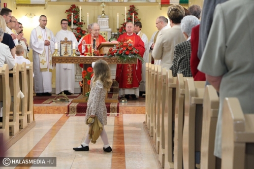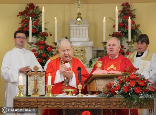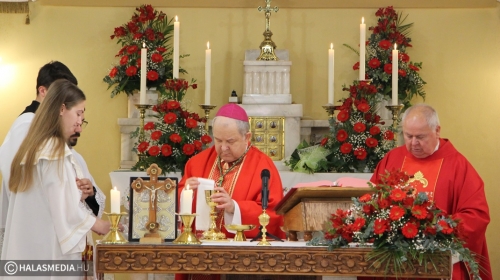 Dr. Bábel Balázs felidézte a kilenc évtizeddel ezelőtti időszakot, amikor példás összefogással mutatta meg a katolikus közösség, hogy mekkora ereje van az akkor reformátusnak számító Kiskunhalason. Felidézte a legfontosabb eseményeket, így 1932 szeptemberének egyik meleg vasárnapját is. Akkor Dr. Hanauer István, váci megyéspüspök az alsóvárosi nagytemplomban bérmált. Ezt követően viszont népes hívő sereg kíséretében az akkor már épülő felsővárosi templom falaihoz érkezett, és az előre elkészített kis falfülkébe elhelyezte az alapkő okmányokat. A metropolita beszélt kiskunhalasi Ván Zsuzsannáról, a református lelkész Ván Benjámin testvéréről is, aki áttért a katolikus hitre. - Nekünk a templom mindig ott van, ahol a legjobban megtapasztaljuk az Isten jelenlétét. A katolikusoknak a templom nem csak egy épület, hanem Jézus Krisztus személyével való találkozás és jelen van az eucharisztiában, az oltári szentségben – tette hozzá az érsek.