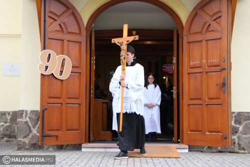 Ünnepi díszbe öltözött a felsővárosi Jézus Szíve Kis Szent Teréz Templom szombaton délelőtt. Pünkösd előtt közvetlenül jeles évforduló kapcsán gyülekeztek a katolikus közösség tagjai Isten házába. A bejárat mellett elhelyezett 90-es szám is jelezte, hogy 1933. május 24-én szentelték fel az épületet. Ebből az alkalomból dr. Bábel Balázs kalocsa-kecskeméti érsek, metropolita mutatott be szentmisét. Az esemény jelentőségét az is mutatja, hogy a távol lévő hívek a világháló segítségével élő közvetítésben követhették nyomon a történéseket.