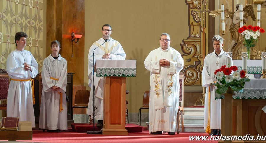 Pénteken reggel nyolc órától érkeztek a hívek a Szent Péter és Pál Római Katolikus Főplébánia Alsóvárosi Templomába, hogy részesei legyenek Szent István Király, Magyarország fővédőszentje főünnepének szentmiséjén. A templom díszítésében a magyar nemzeti színek domináltak, az oltár előtt a feljáró közepén nemzeti színű szalaggal átkötött kenyér helyezkedett el.