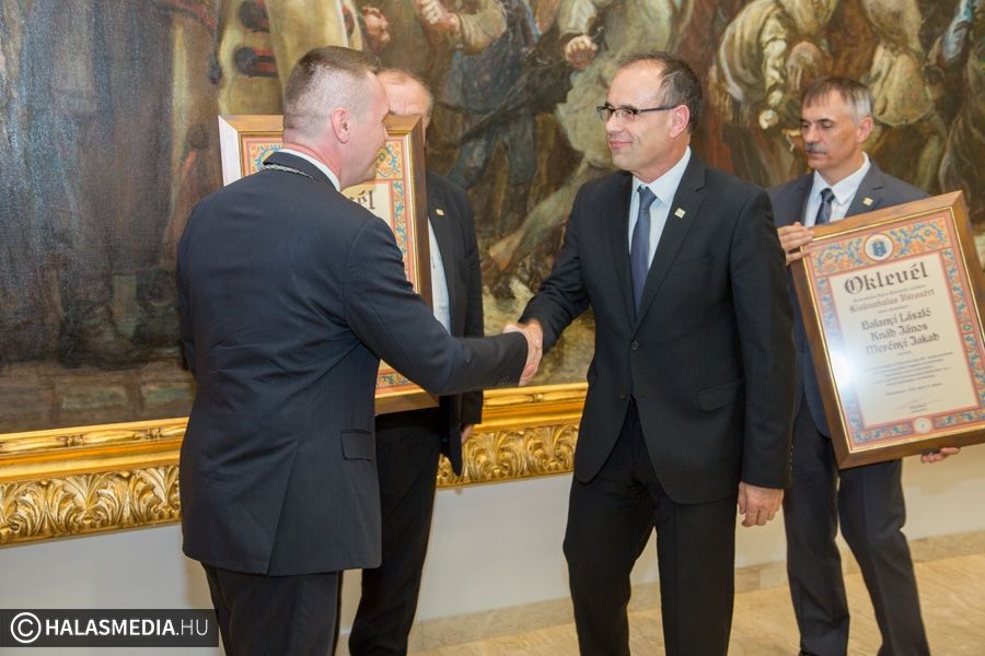 Szintén Kiskunhalas Városért kitüntetést vehetett át Merényi Jakab, Knáb János és Balanyi László, a Merkbau Építőipari és Kereskedelmi Kft. három tulajdonosa, akik tevékenységükkel nagyban hozzájárultak Kiskunhalas város fejlődéséhez, a civil és sportélet lehetőségeinek bővítéséhez és a közösségformálás erősítéséhez.
