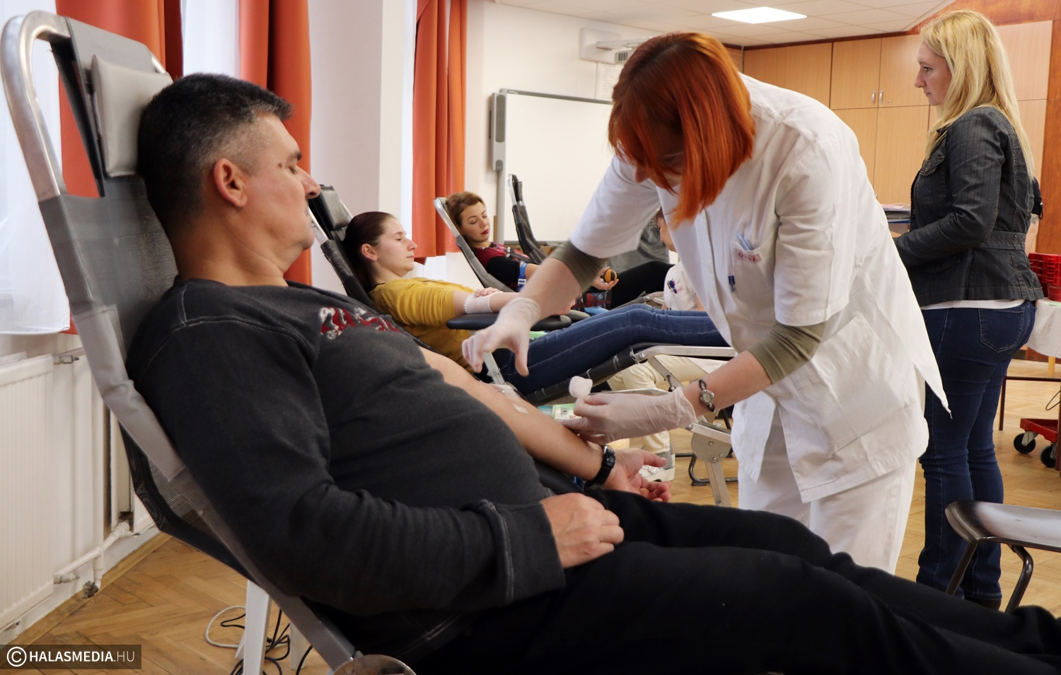 Sorban álltak a diákok és a pedagógusok a KSZC Dékáni Árpád Szakgimnáziumának egyik tanterme előtt pénteken délelőtt. Az egyik helyiség pedig véradóhellyé alakult, ahol a Magyar Vöröskereszt Kiskunhalasi Területi Szervezete és a vérellátó szolgálat munkatársai várták a donorokat. Minden donációt egy alapos orvosi vizsgálat előzött meg, csak ezután következett a szúrás. Nem kellett biztatni a dékánis kollektívát, szinte egymásnak adták a kilincset.