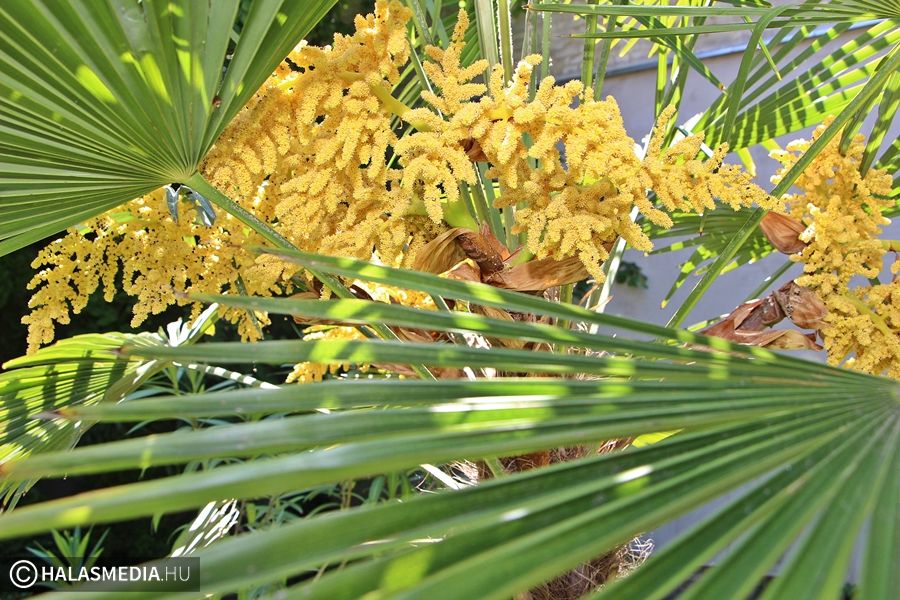 - Édesanyám a hatvanas években kapta névnapjára az akkor még kis cserepes növényt. Hosszú évtizedekig gondozta, később már én foglalkoztam vele. Bent tartottuk a szobában, locsoltuk rendszeresen, egyre csak cseperedett. Végül akkora lett, hogy ki kellett hoznunk a házból, azóta az udvaron neveljük. Most már több, mint ötvenéves, és szebb, mint valaha. Amint az látszik is, gyönyörű színű a virágja, azt sajnálom csak, hogy rövid ideig lehet gyönyörködni benne. Már várom, hogy jövőre újra láthassam a szép virágait – árulta el a pálmafa büszke tulajdonosa.