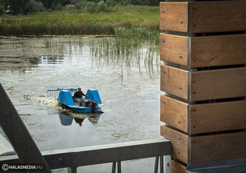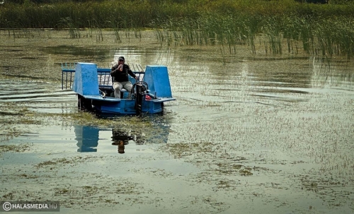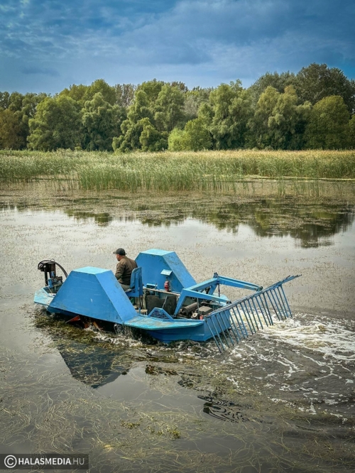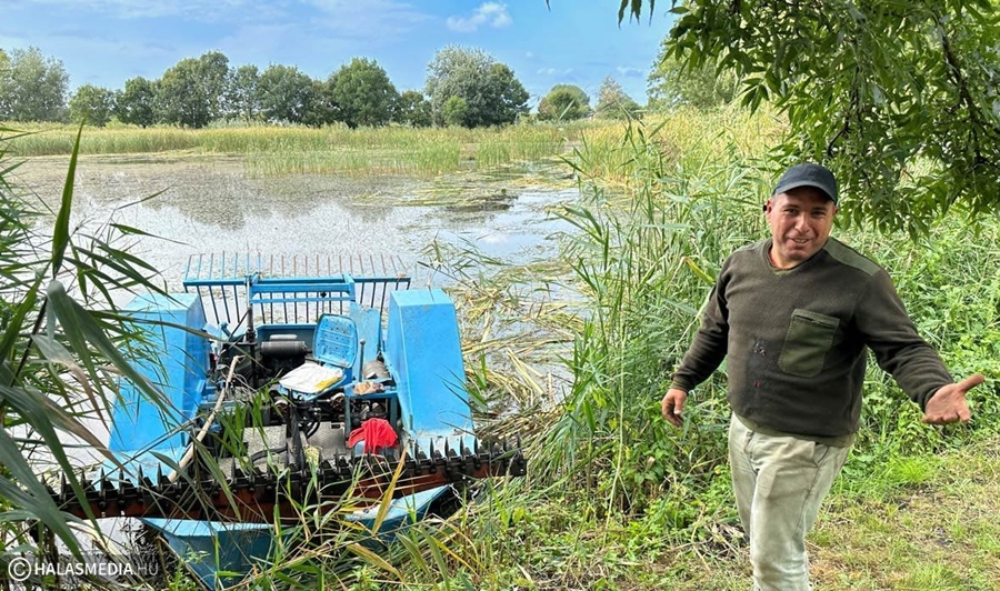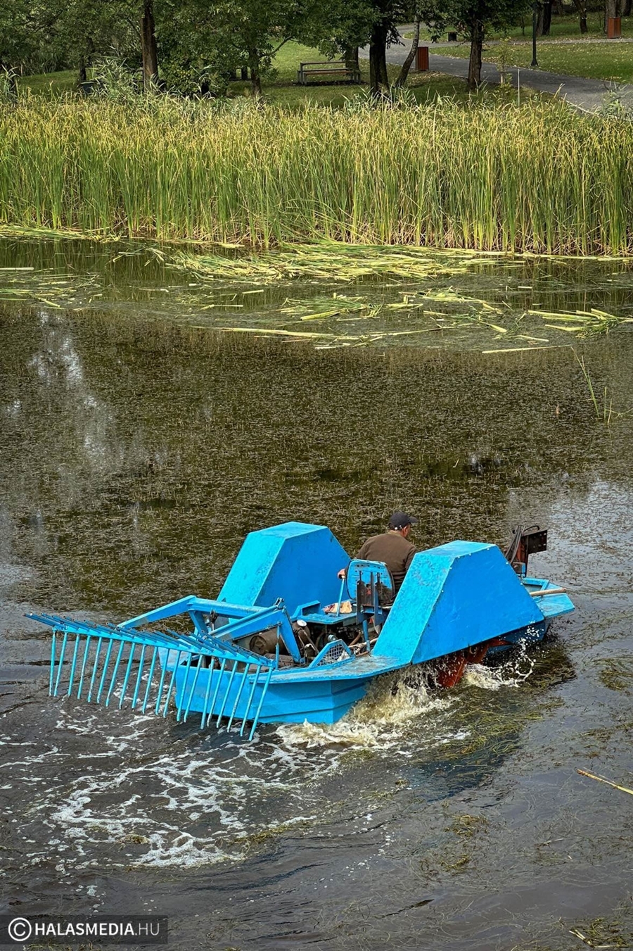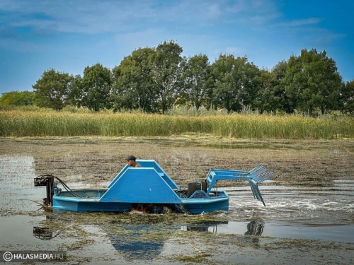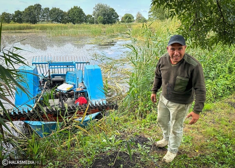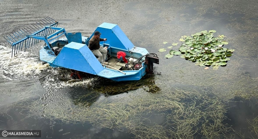 Különleges, úszó nádvágó és hínárszedő szerkezettel mentesíti a Csetényi Élménypark záportározójának csónakázható felszínét Borbély Sándor nádvágó vállalkozó. A munkát a héten kezdte a szakember és néhány nap múlva csónakkal jól bejárható hínár és nádmentes felületet ad át az üzemeltető Halasi Városmenedzser Nonprofit Kft. részére.