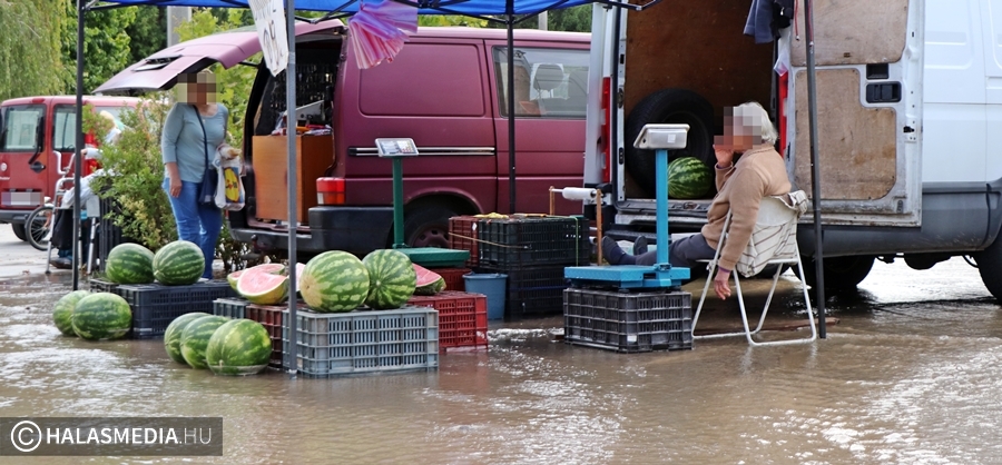 Vízvezetéket vágott át egy munkagép a piacnál (galéria)