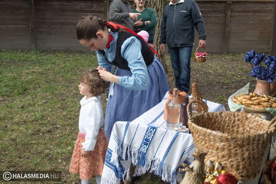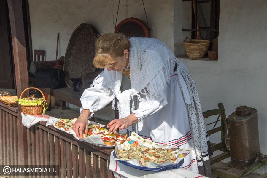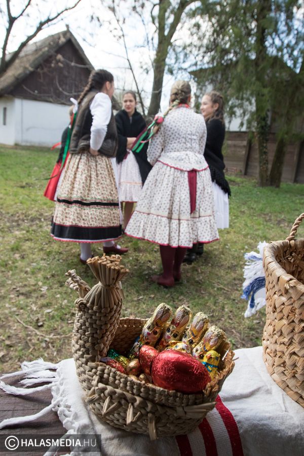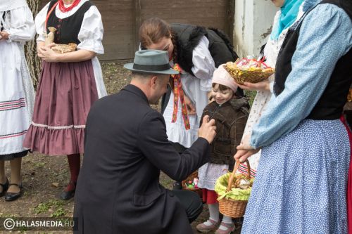 A lányok, asszonyok napok óta erre a jeles napra készültek. Tojást festettek, süteményeket sütöttek, sonkát főztek, ízletes vendégváró falatokat készítettek. A hölgyek kora délelőtt óta a halasi Tájház udvarán voltak, mindent előkészítettek, hogy mire a fiúk megérkeznek, minden tökéletes legyen.