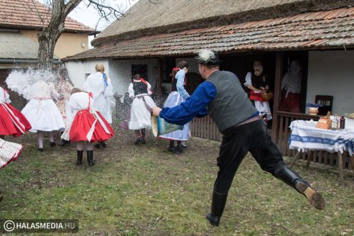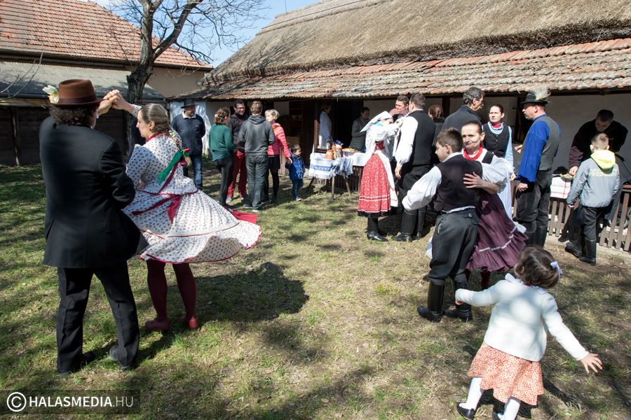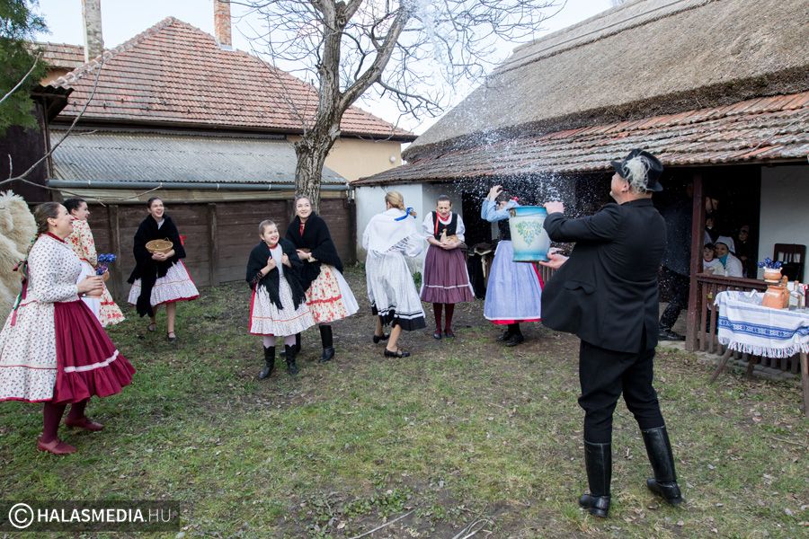 Évek óta hagyomány Kiskunhalason, hogy a Tájház udvarán gyűlnek össze a Halas Táncegyüttes tagjai egy hagyományőrző húsvéti locsolkodásra. A hűvös, szeles idő ellenére ma sem maradt el a vödrös, szódás móka.