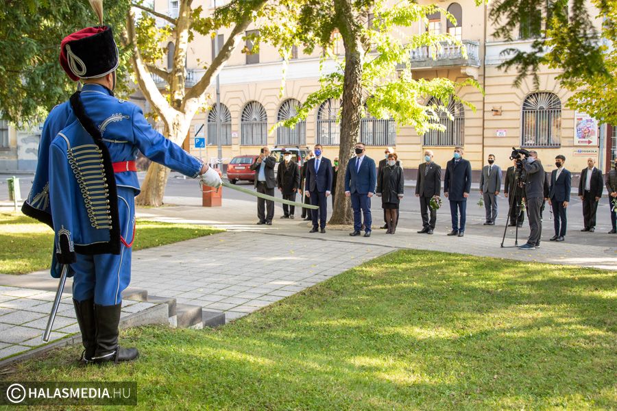 Mint ahogy mindent, az idei október 23-i ünnepi megemlékezéseket is felülírja a koronavírus-veszély. A szabályok csak kisebb ünnepségekre adnak lehetőséget, így a halasi városi program is az aktuális előírások betartásával lett megszervezve. Délelőtt 10 órakor az Országzászló emlékműnél vonták fel a nemzeti lobogót a Halasi Lovasbandérium tagjainak közreműködésével.