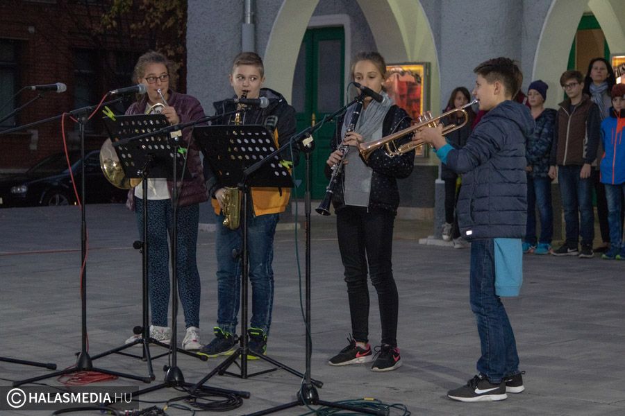 Szent Mártonra emlékeztek ma este a halasi városközpontban. A Halasi Média és Kultúra Kft. munkatársai a mozi előtt zenés műsorral várták a résztvevőket.